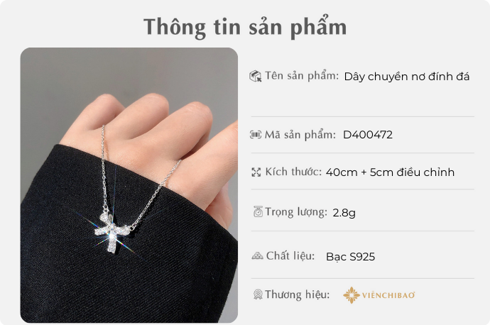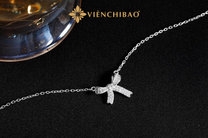 Viễn Chí Bảo hân hạnh giới thiệu đến quý khách chiếc dây chuyền nơ đính đá – sự kết hợp hoàn hảo giữa chất liệu bạc cao cấp, kỹ thuật chế tác tinh xảo và cảm hứng thiết kế giàu ý nghĩa. Chúng tôi tin rằng sản phẩm này sẽ trở thành một phần không thể thiếu trong bộ sưu tập trang sức của bạn, giúp tôn vinh vẻ đẹp ngọt ngào và thanh lịch ở mọi khoảnh khắc.