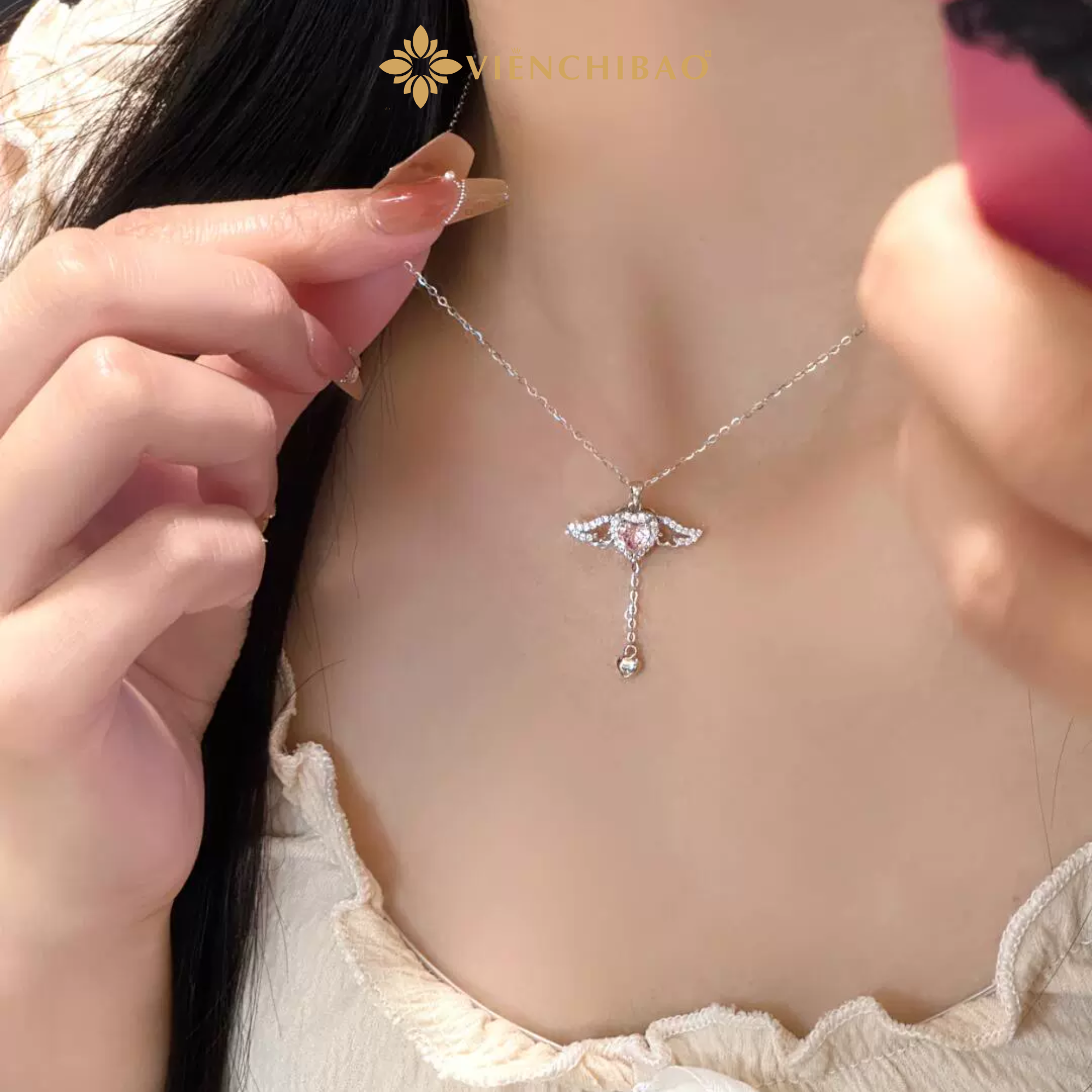Hằng ngày: Phối cùng áo thun trơn, áo sơ mi hoặc váy nhẹ để mặt dây đôi cánh trở thành điểm nhấn tinh tế nơi cổ.