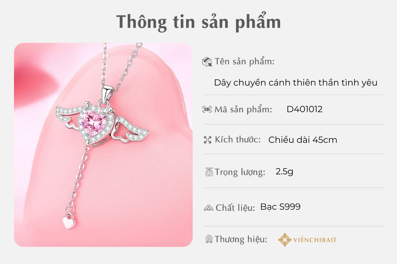 Kiểu dáng: Mặt dây đôi cánh thiên thần kiểu cách thanh lịch, kết hợp với dây mảnh để nét nữ tính được tôn lên rõ nét.