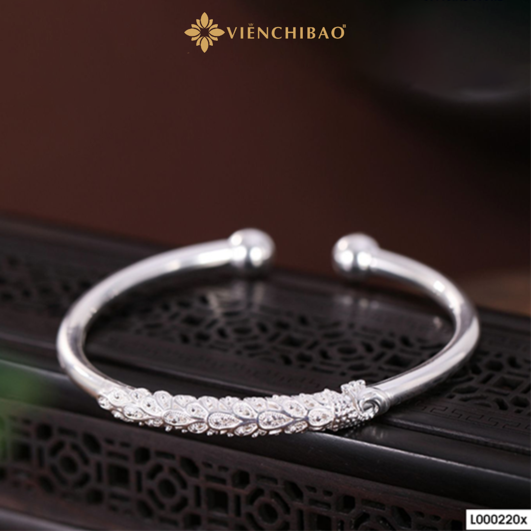 Được chế tác từ bạc nguyên chất S999 – dòng bạc cao cấp mang lại độ sáng và giá trị vượt trội, chiếc kiềng “Không Tước Trắng” bản hở hiện lên với vẻ ngoài thanh lịch và đầy đẳng cấp. Thiết kế bản hở giúp vòng ôm nhẹ cổ tay mà vẫn giữ được sự nổi bật riêng biệt; màu trắng sáng của bạc hòa quyện với ánh kim tinh tế tạo nên điểm nhấn sang trọng cho người đeo mỗi ngày.