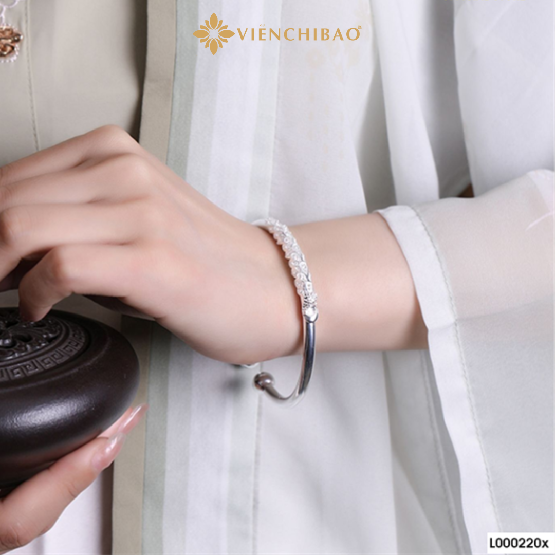 Chất liệu: Bạc S999 nguyên chất – tỷ lệ bạc gần 99,9 % giúp giữ được độ sáng lâu và tạo cảm giác cao cấp.