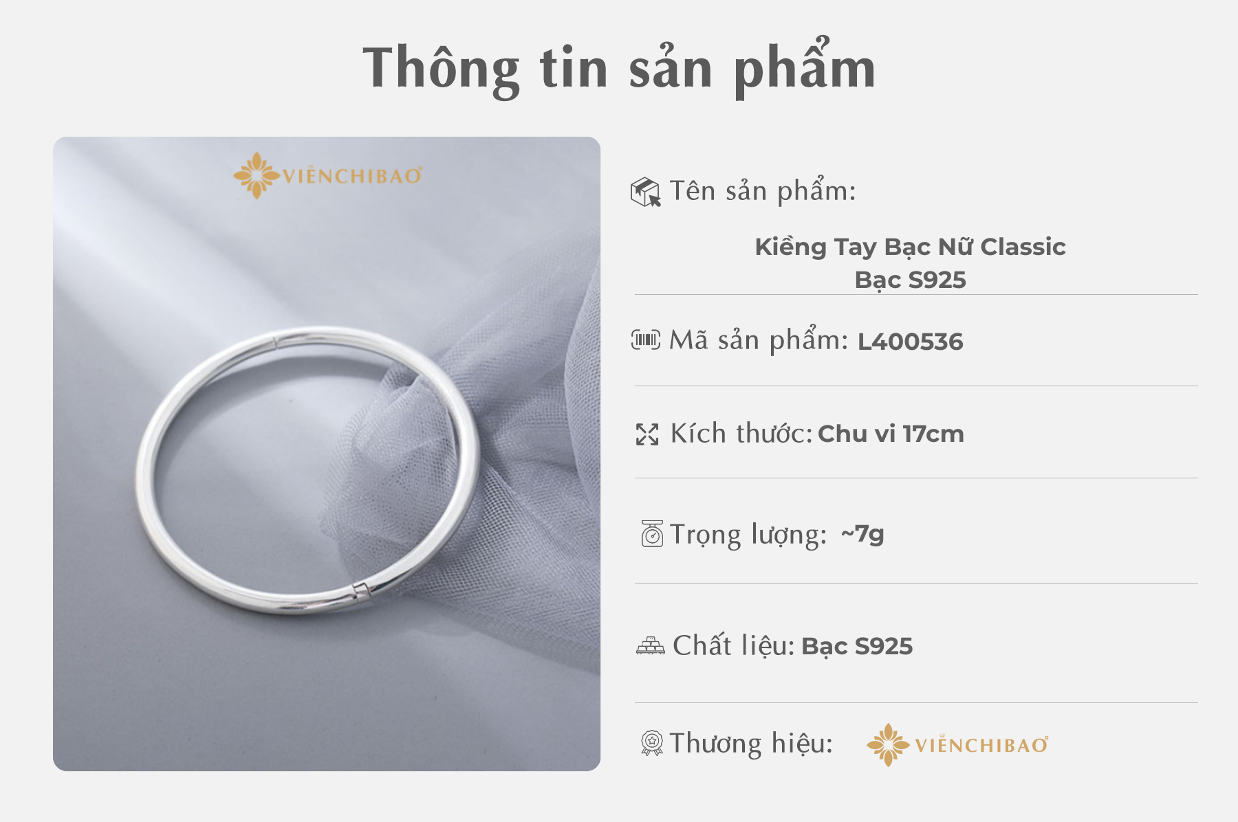 Tên sản phẩm: Kiềng Tay Bạc Nữ Classic – Bạc S925