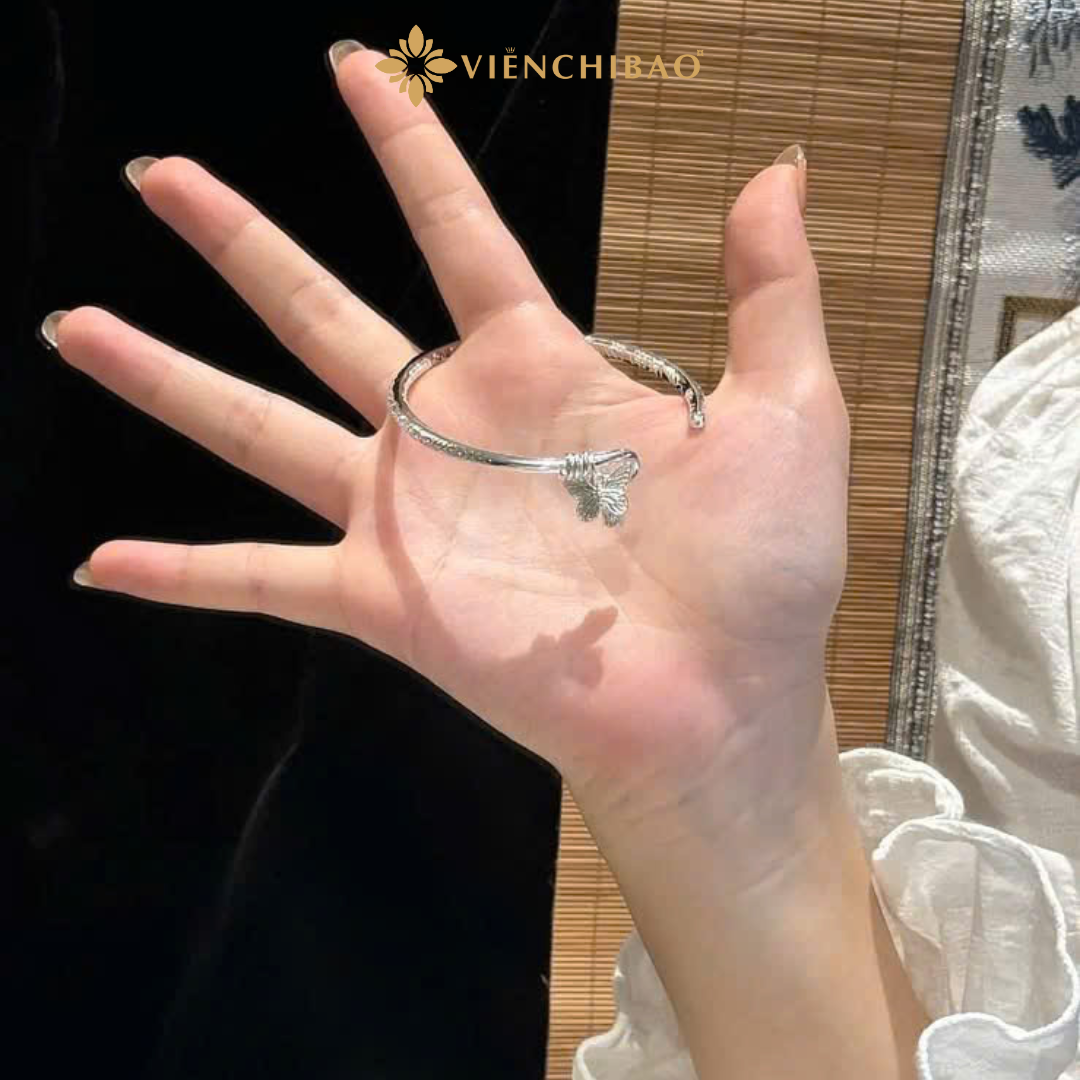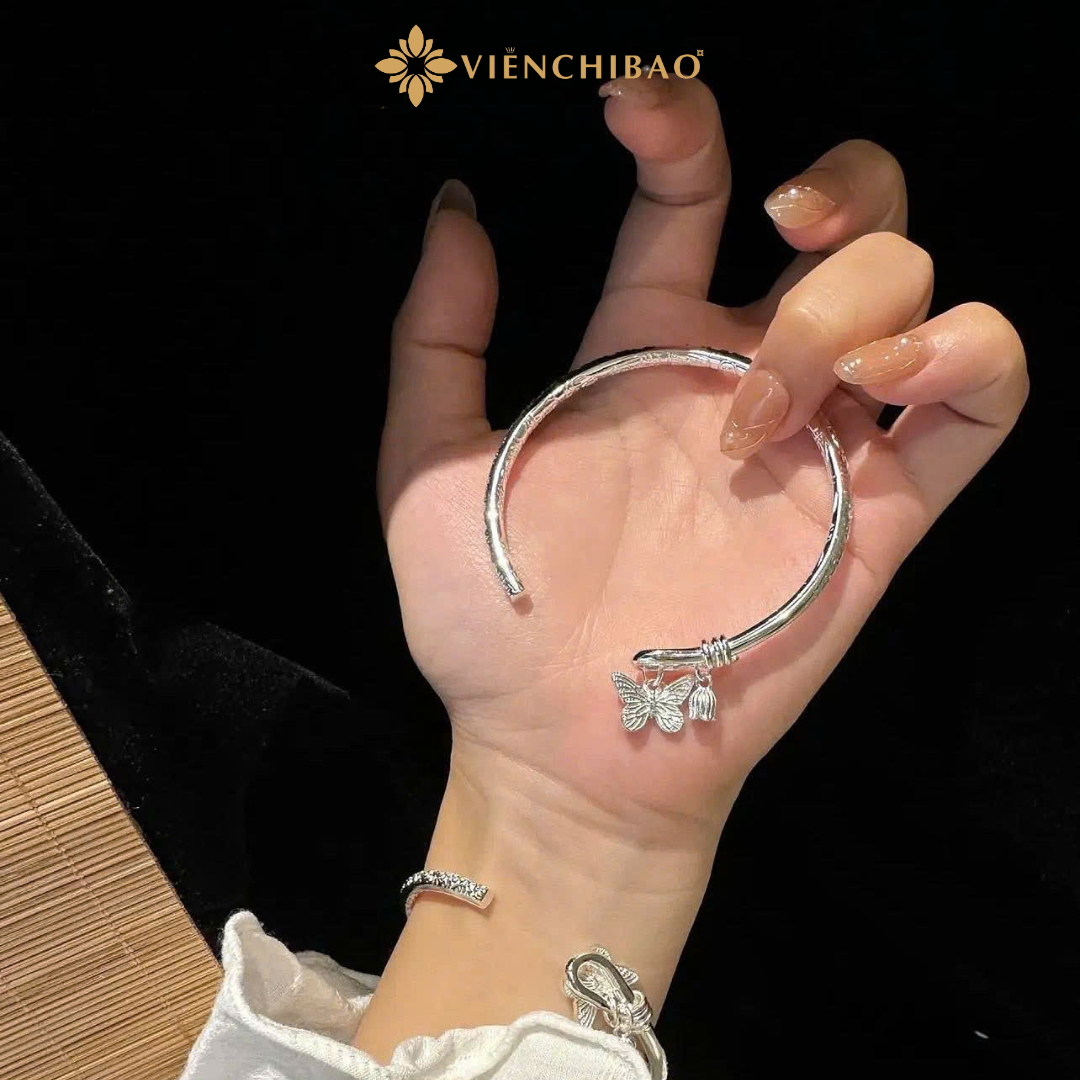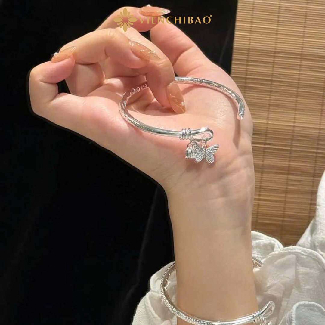 Giá trị thẩm mỹ: Kiềng tay bạc S999 với charm bướm tạo nên phụ kiện thời trang thanh lịch nhưng không kém phần nổi bật — phù hợp từ trang phục hàng ngày đến bộ đồ đi tiệc.