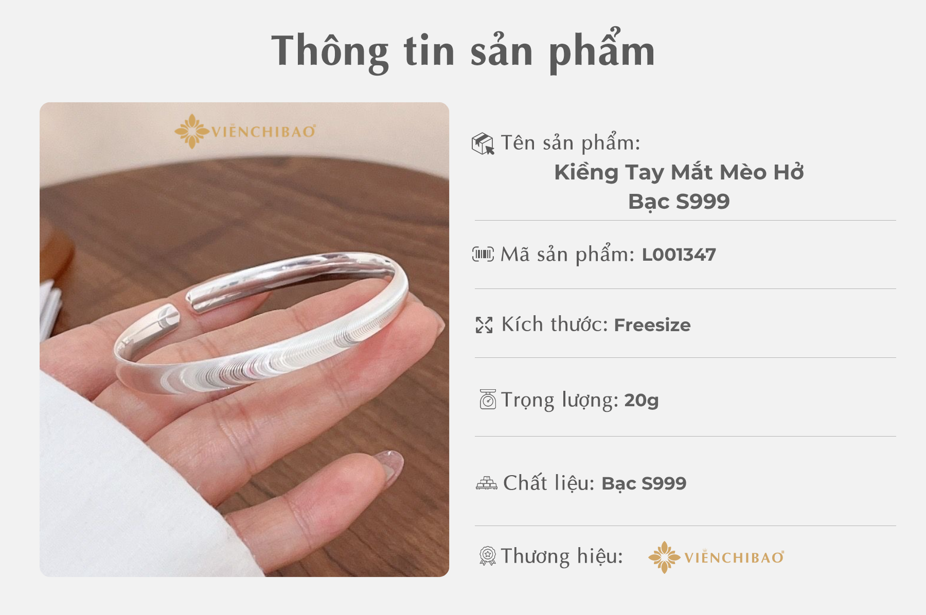I, Thông tin sản phẩm Kiềng Tay Mắt Mèo Hở