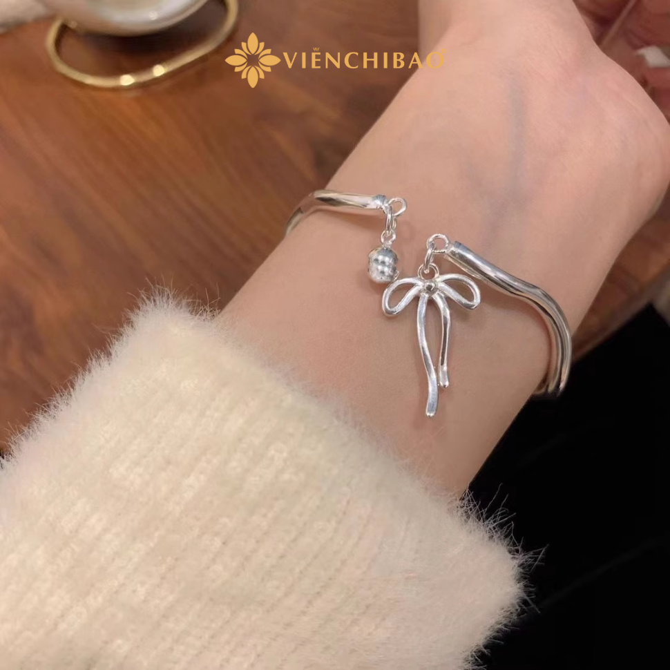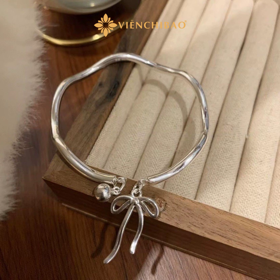 Kiềng tay sóng charm nơ chuông là mẫu trang sức tinh tế dành cho nàng yêu thích sự nhẹ nhàng và nữ tính.