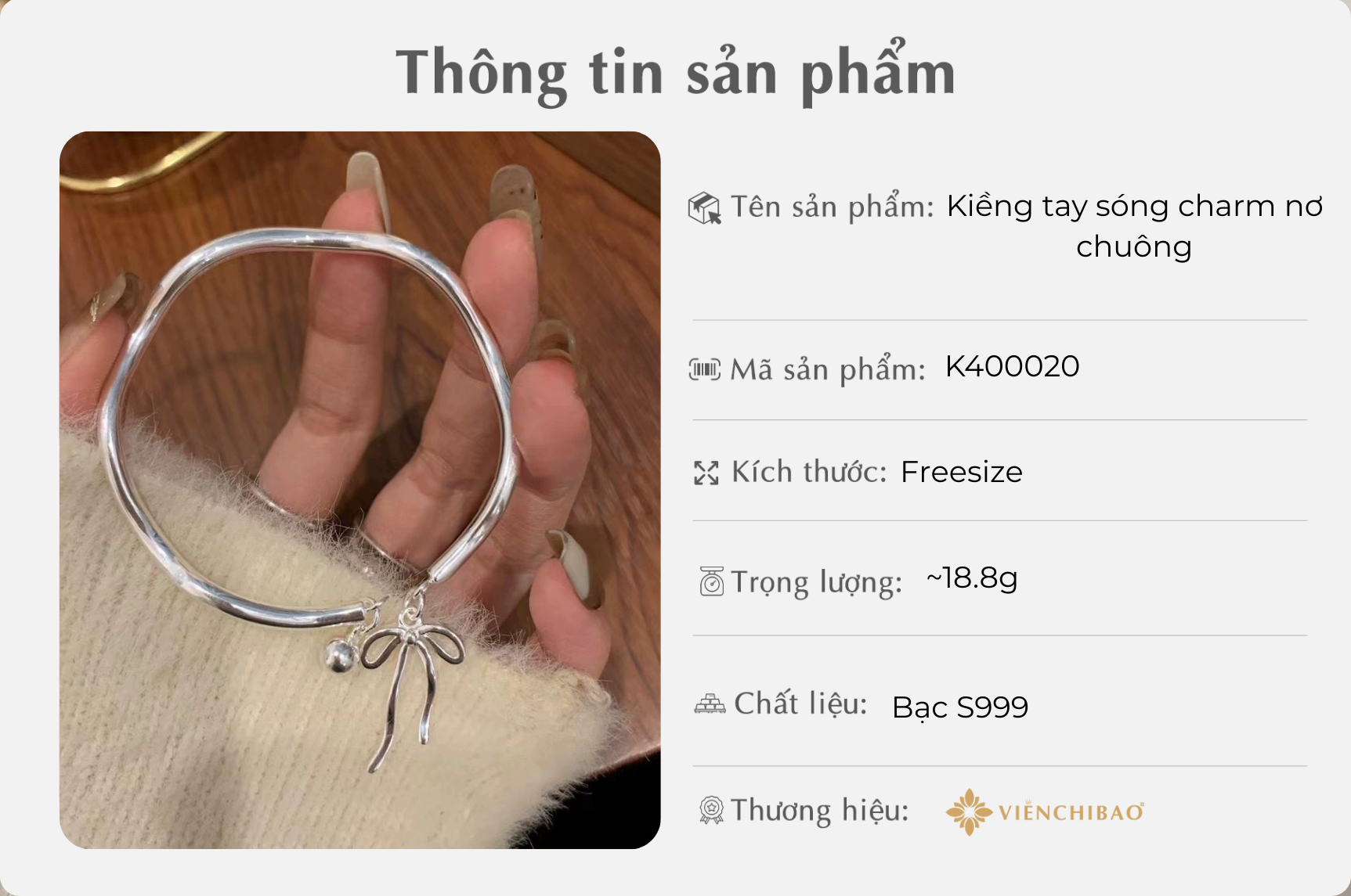 I, Thông tin sản phẩm Kiềng tay sóng charm nơ chuông