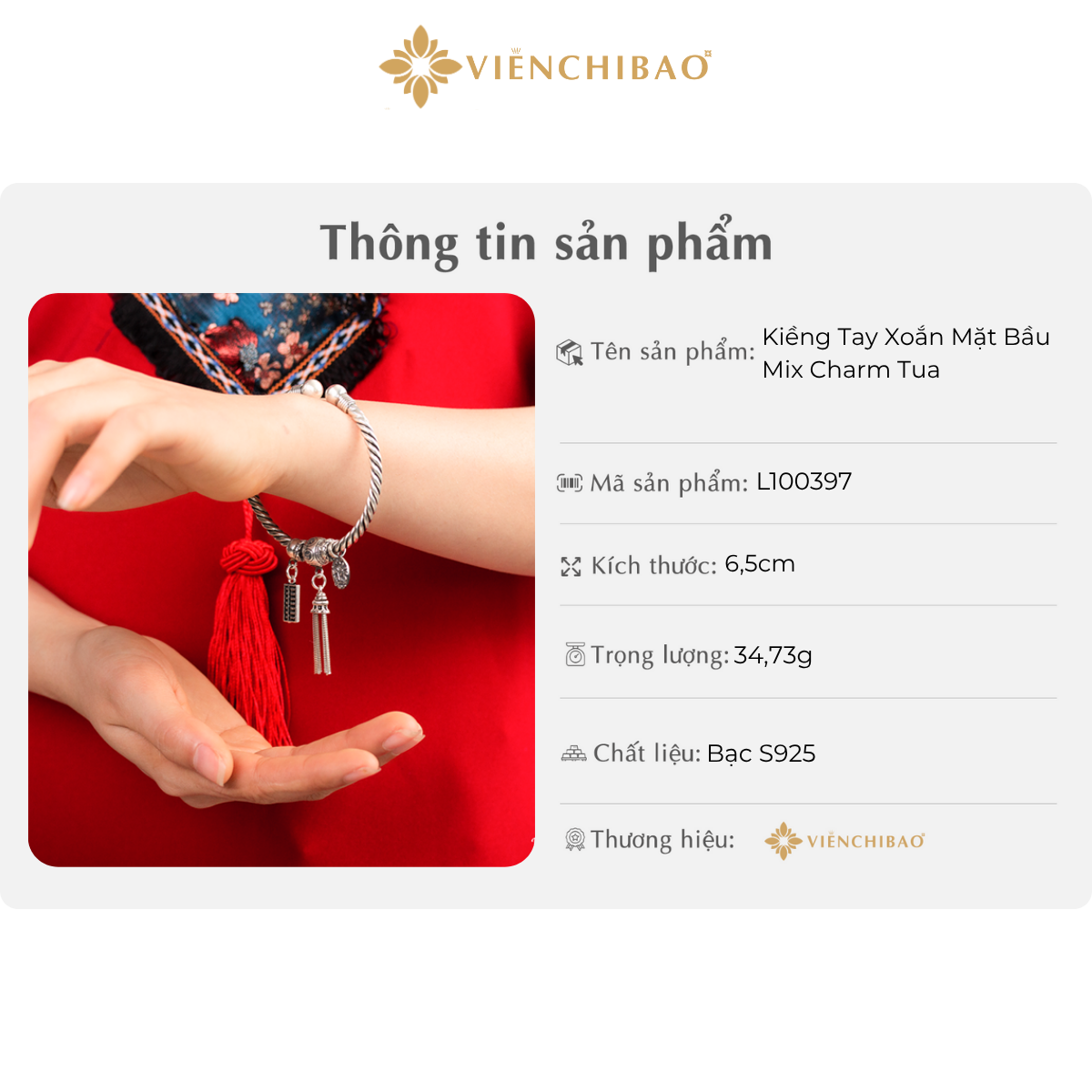 THÔNG TIN SẢN PHẨM KIỀNG TAY XOẮN MẶT BẦU MIX CHARM TUA