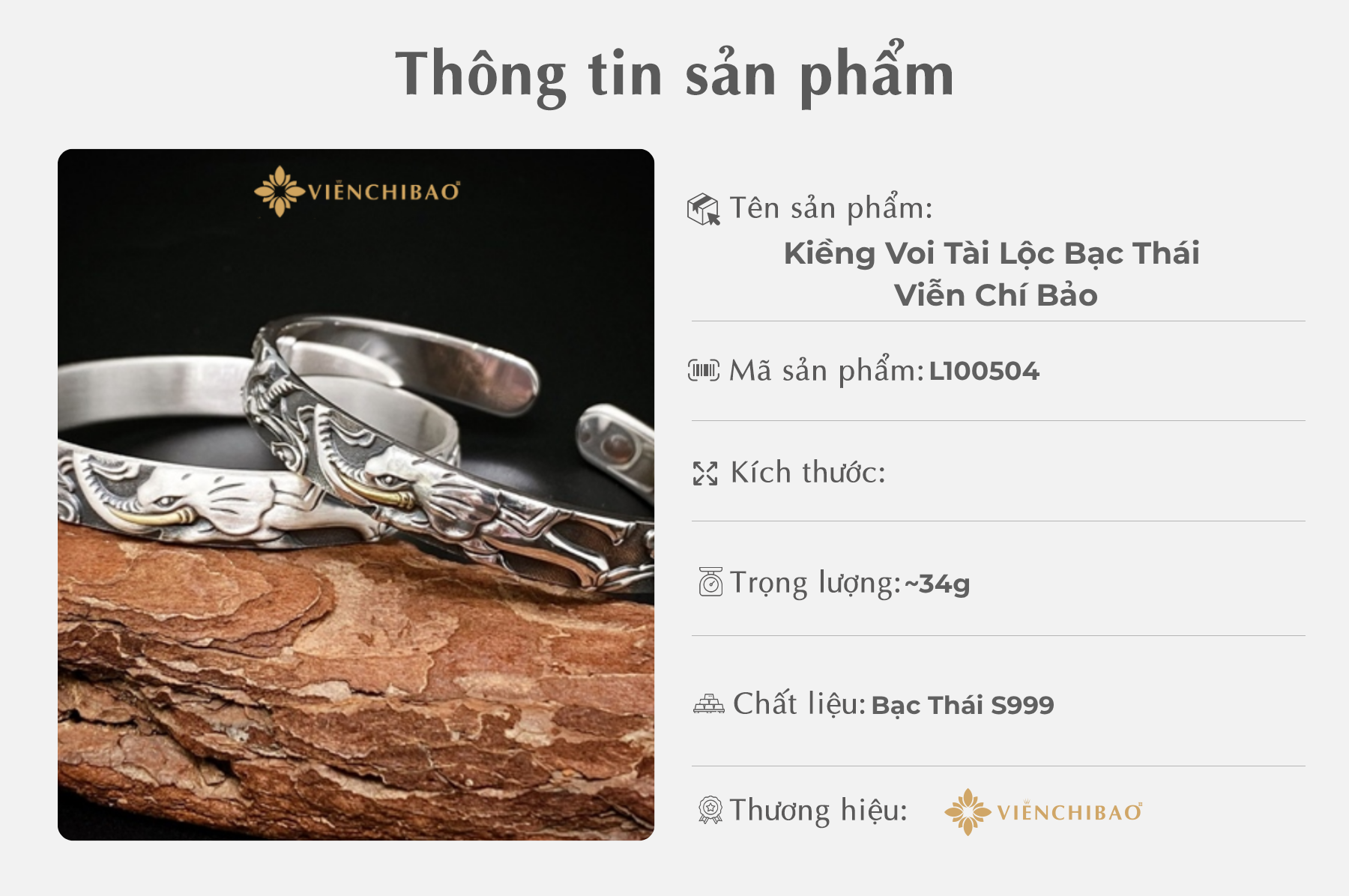 Mỗi sản phẩm của Viễn Chí Bảo đều là sự kết hợp giữa nghệ thuật chế tác thủ công tinh tế và triết lý phong thủy sâu sắc. Kiềng Voi Tài Lộc không chỉ là một món trang sức bạc Thái độc đáo, mà còn là biểu tượng của tài lộc, sức mạnh và thịnh vượng – món quà dành cho những người đàn ông bản lĩnh, kiên định và luôn hướng đến thành công.