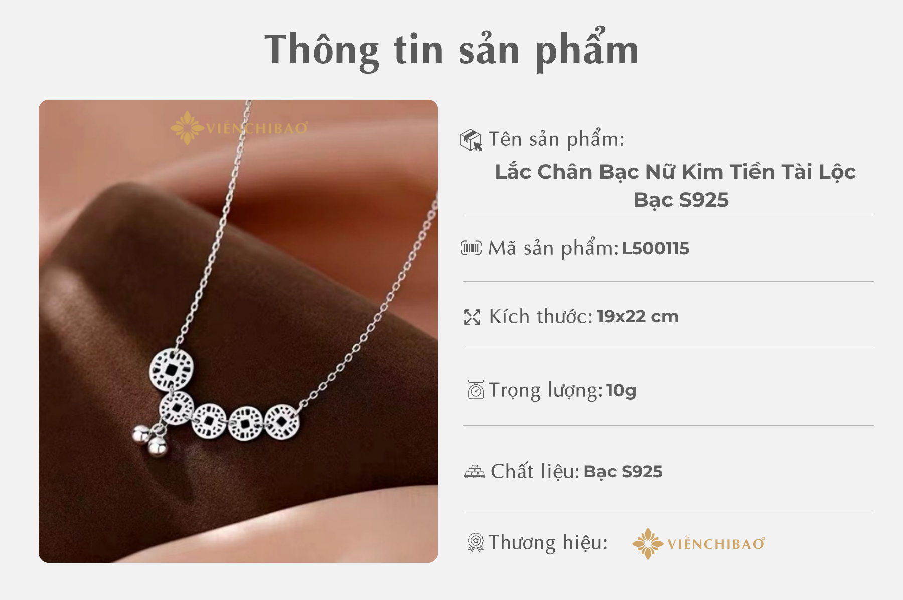 II. Thông Tin Sản Phẩm Lắc Chân Bạc Nữ Kim Tiền Tài Lộc