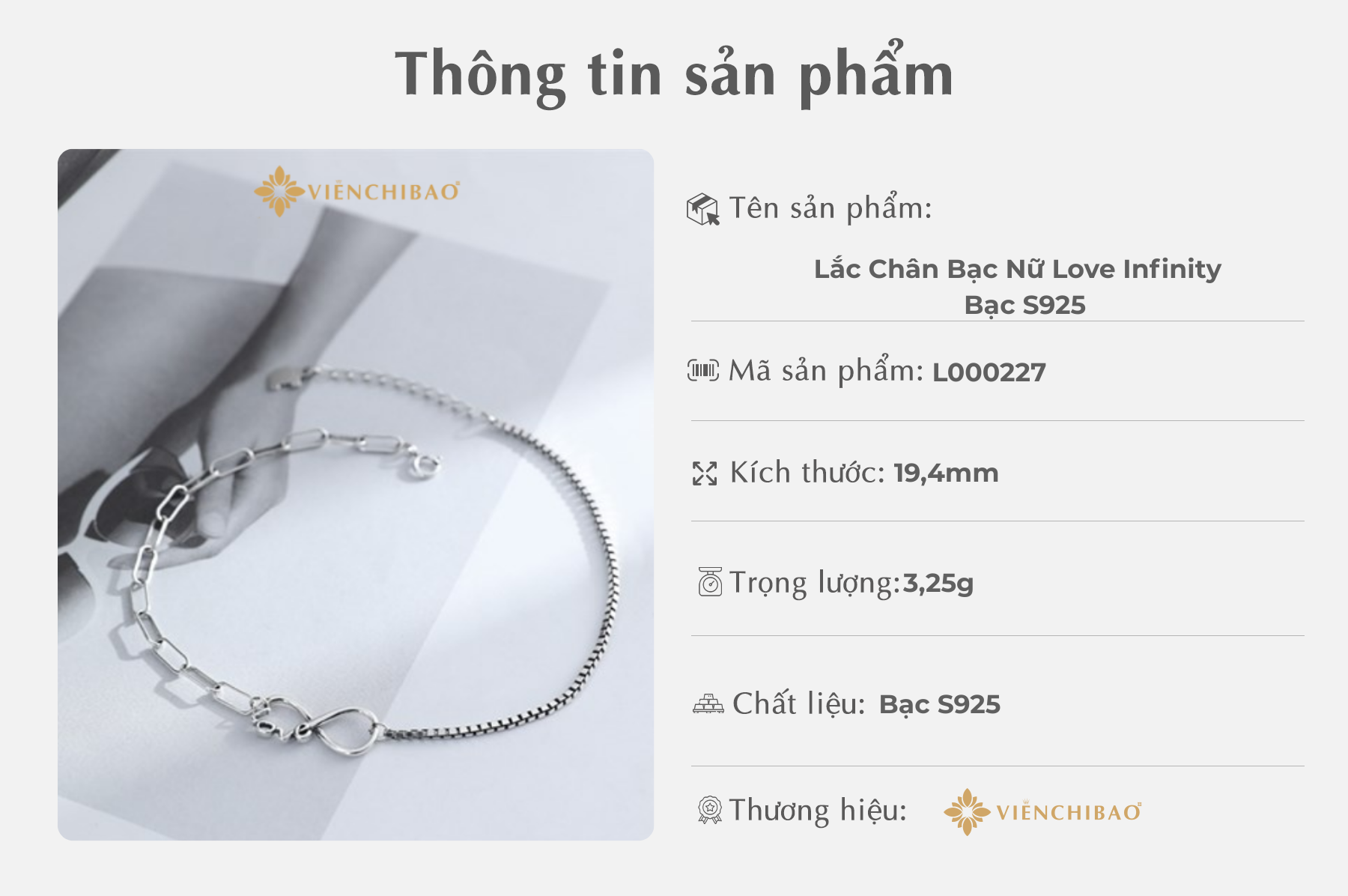 • Tên sản phẩm: Lắc Chân Bạc Nữ Love Infinity – Bạc S925