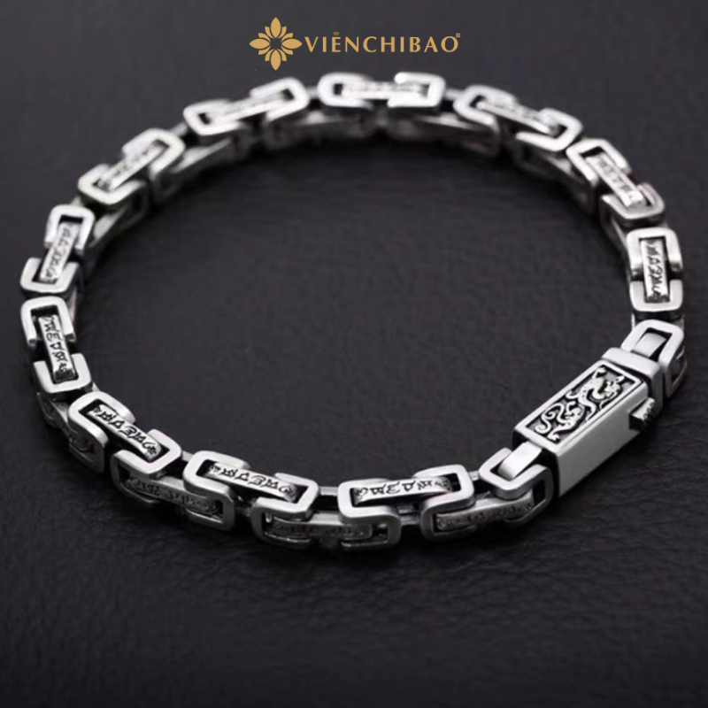 Lắc Tay Bạc Nam Lục Tự Vuông Hỏa Long