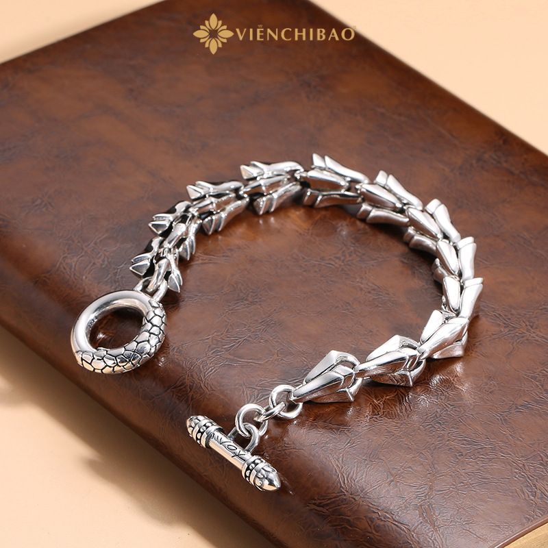 Viễn Chí Bảo đã kết hợp tinh tế giữa bạc S925 cao cấp và chi tiết vảy rồng chạm khắc sắc nét, tạo nên một món trang sức độc đáo dành cho các quý ông yêu thích sự thanh lịch, hấp dẫn, nhưng vẫn đầy mạnh mẽ. Mẫu lắc tay này sẽ là món quà lý tưởng cho những dịp đặc biệt hoặc đơn giản là dành cho chính mình như một biểu tượng của sức mạnh và sự bền bỉ.