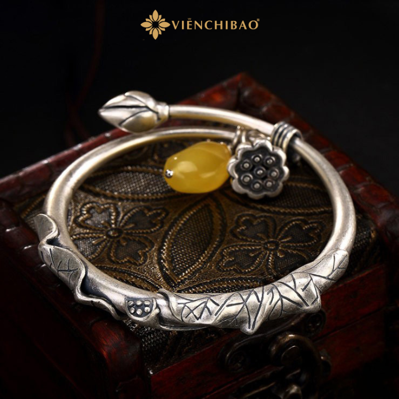 Được chế tác từ chất liệu bạc thái S990 với 99% là bạc nguyên chất, khi trải qua quá trình oxi hóa ở nhiệt độ cao đã giúp lắc tay bạc nữ hoa sen mang màu sắc đặc trưng của bạc thái.