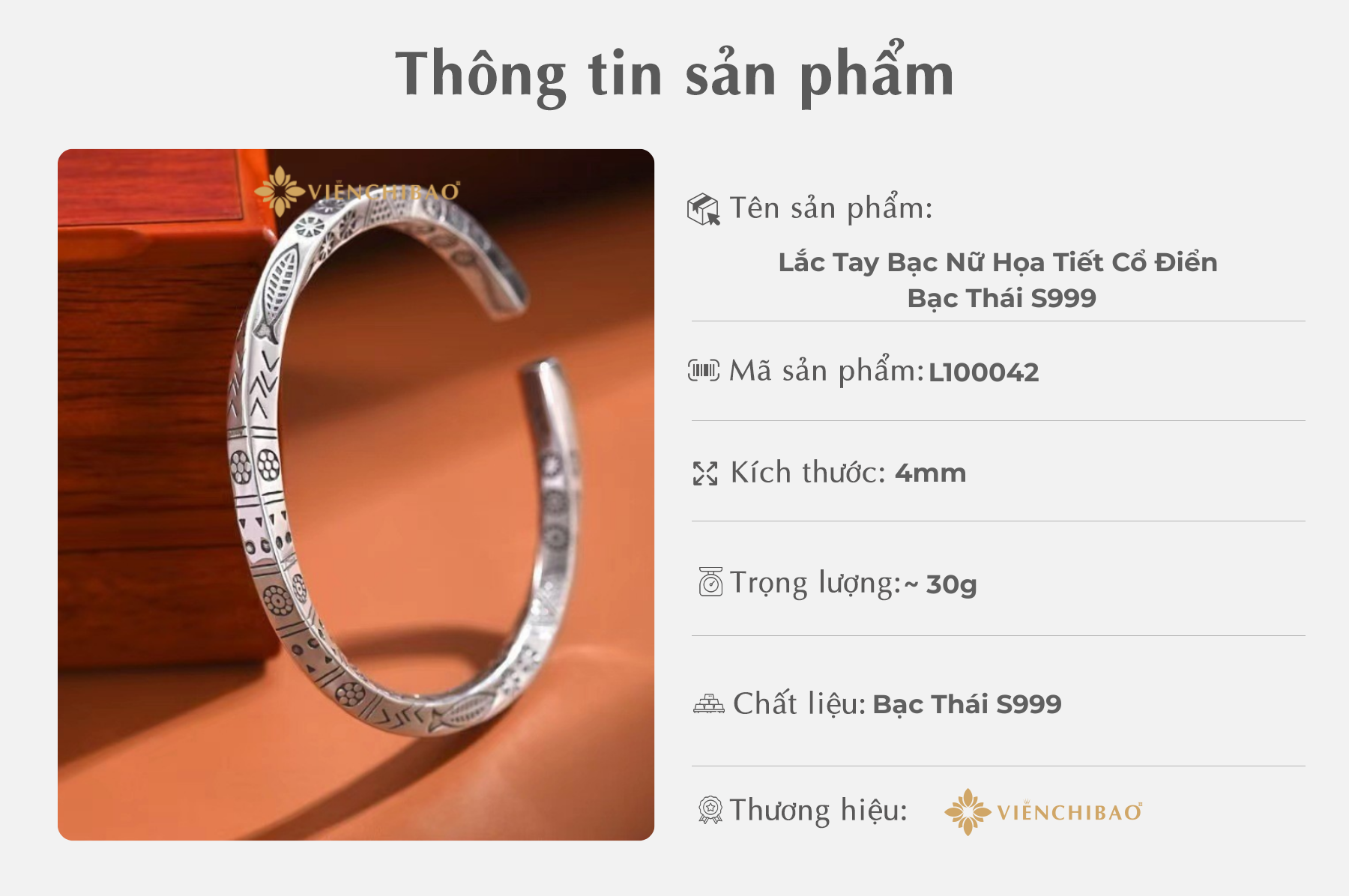 Viễn Chí Bảo xin gửi lời tri ân đến quý khách hàng đã luôn tin tưởng và đồng hành cùng chúng tôi trong hành trình lan tỏa vẻ đẹp truyền thống qua từng món trang sức thủ công. Lắc Tay Bạc Nữ Họa Tiết Cổ Điển không chỉ là một sản phẩm, mà là lời kể về sự thanh lịch vượt thời gian. Chúng tôi tin rằng, mỗi chiếc lắc tay khi đến tay người sở hữu sẽ mang theo một phần tâm huyết và tình yêu với nghề kim hoàn từ những người thợ lành nghề.