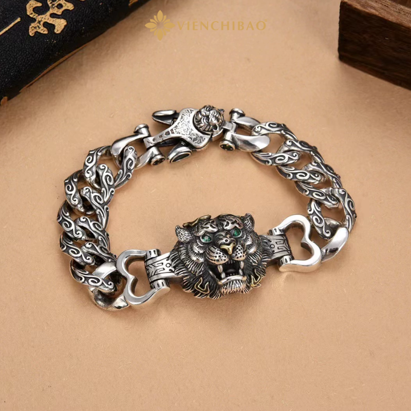 Lắc Tay Bạc Thái Nam Chúa Sơn Lâm là một sản phẩm mang đậm phong cách mạnh mẽ và đầy chất “hảo hán” từ thương hiệu Viễn Chí Bảo. Sản phẩm được lấy cảm hứng từ hình ảnh “Chúa Sơn Lâm” – một biểu tượng của sự dũng mãnh và quyền lực trong thế giới tự nhiên. Thiết kế này khắc họa hình tượng của loài hổ, mang lại sức mạnh, sự bảo vệ và khí phách cho người đeo.