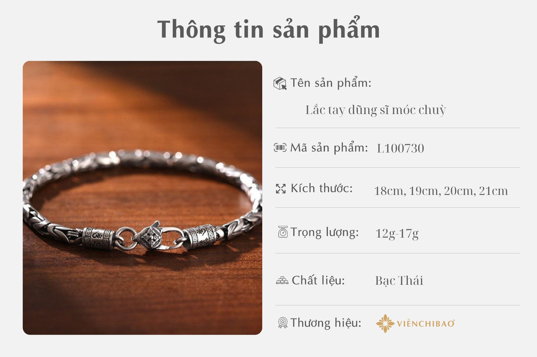 THÔNG TIN SẢN PHẨM LẮC TAY BẠC THÁI DŨNG SĨ MÓC CHÙY KIM CANG