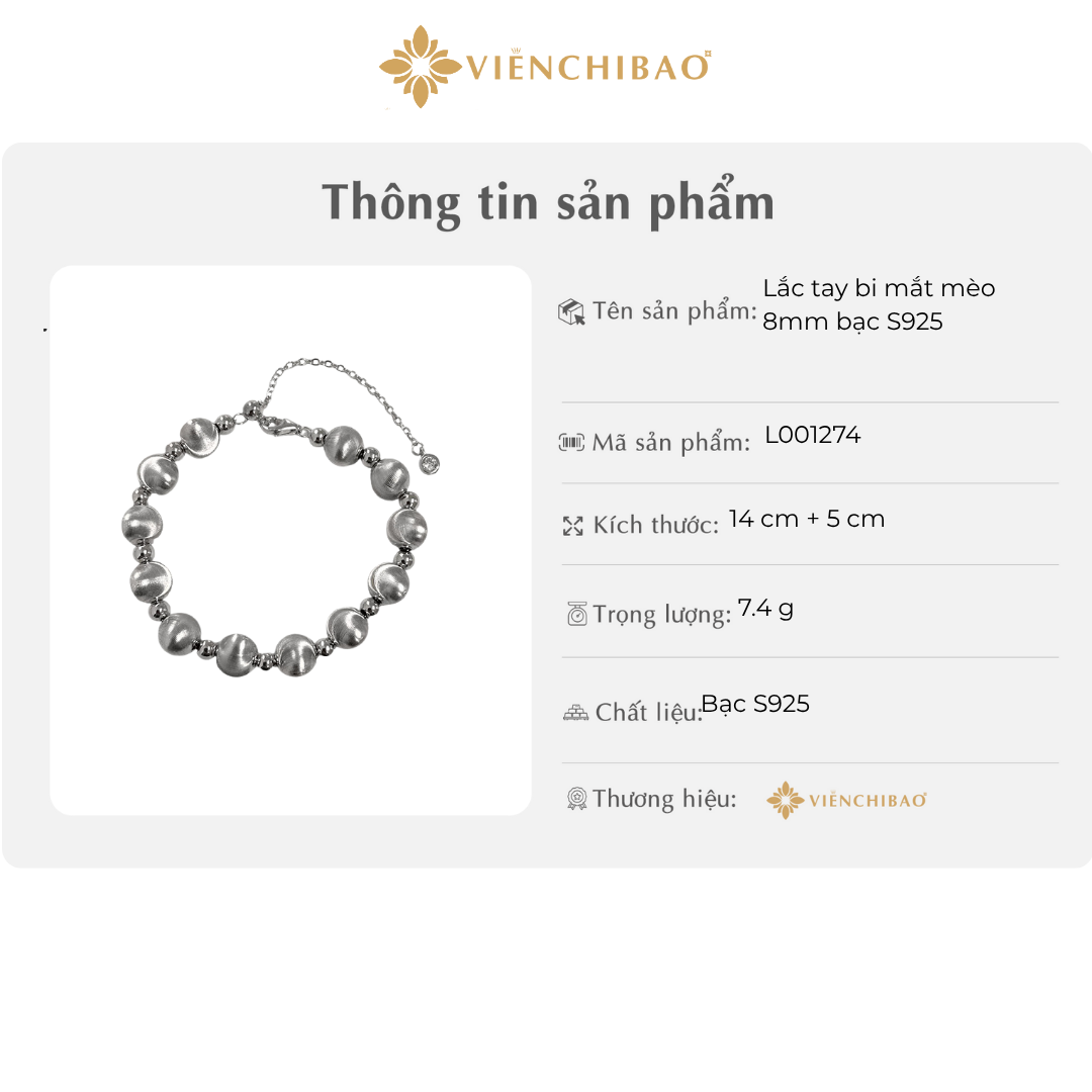 I. THÔNG TIN SẢN PHẨM LẮC TAY BI MẮT MÈO – BẠC Ý S925