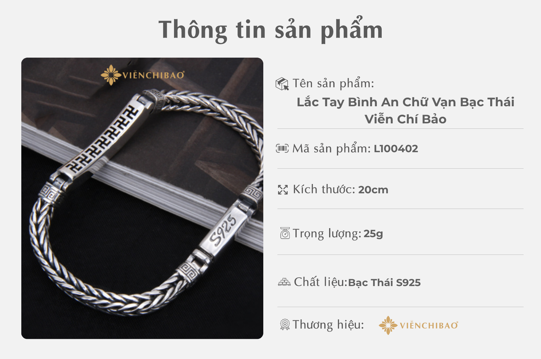 Tại Viễn Chí Bảo, mỗi sản phẩm không chỉ là một món đồ trang sức mà còn là kết tinh của tình yêu, sự tinh tế và niềm tin vào những giá trị bền lâu. Lắc Tay Bình An Chữ Vạn Bạc Thái là minh chứng cho sự kết hợp hoàn hảo giữa nghệ thuật thủ công và biểu tượng sự bình an, thịnh vượng. Cảm ơn bạn đã tin tưởng và lựa chọn Viễn Chí Bảo để đồng hành cùng những khoảnh khắc đặc biệt trong cuộc sống.