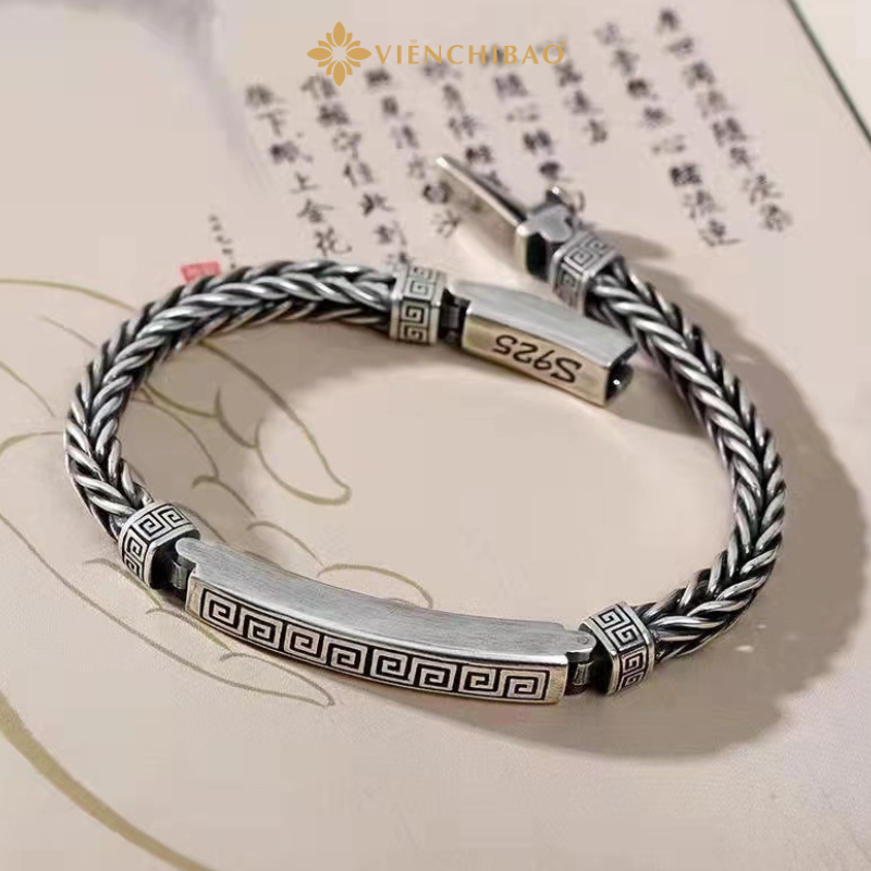 Lắc Tay Bình An Chữ Vạn Bạc Thái – Viễn Chí Bảo