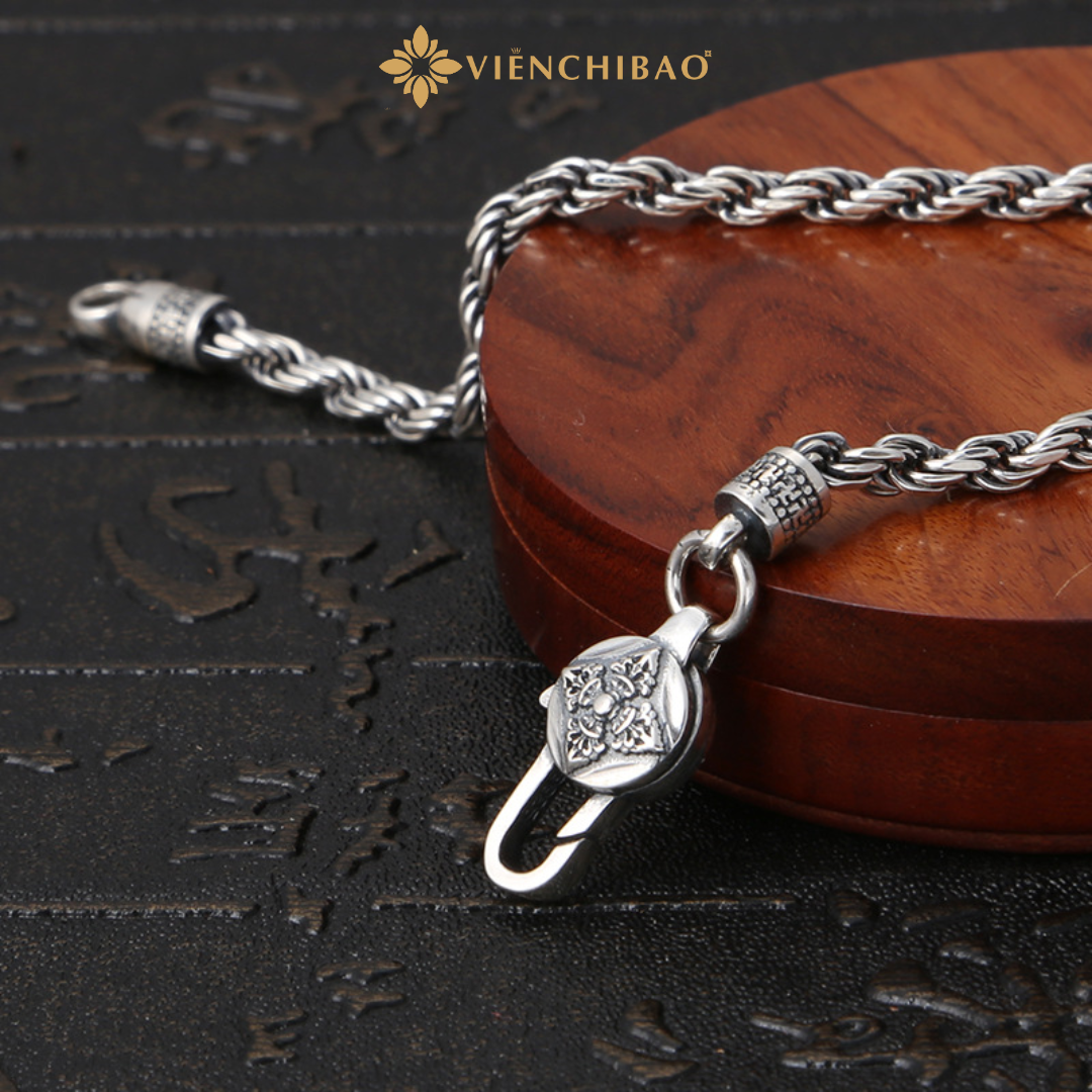 Sản phẩm được chế tác từ Bạc Thái S925 cao cấp, nổi bật với tông màu ánh xám đặc trưng cùng khóa cổ điển được chạm khắc tinh xảo, thể hiện sự tỉ mỉ và gu thẩm mỹ cao của người đeo. Đây là món trang sức lý tưởng dành cho những ai yêu thích vẻ đẹp cổ điển xen lẫn phong thái sang trọng.