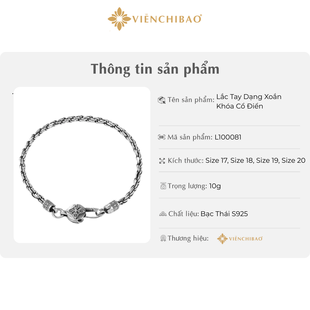 I. THÔNG TIN SẢN PHẨM LẮC TAY DẠNG XOẮN KHÓA CỔ ĐIỂN