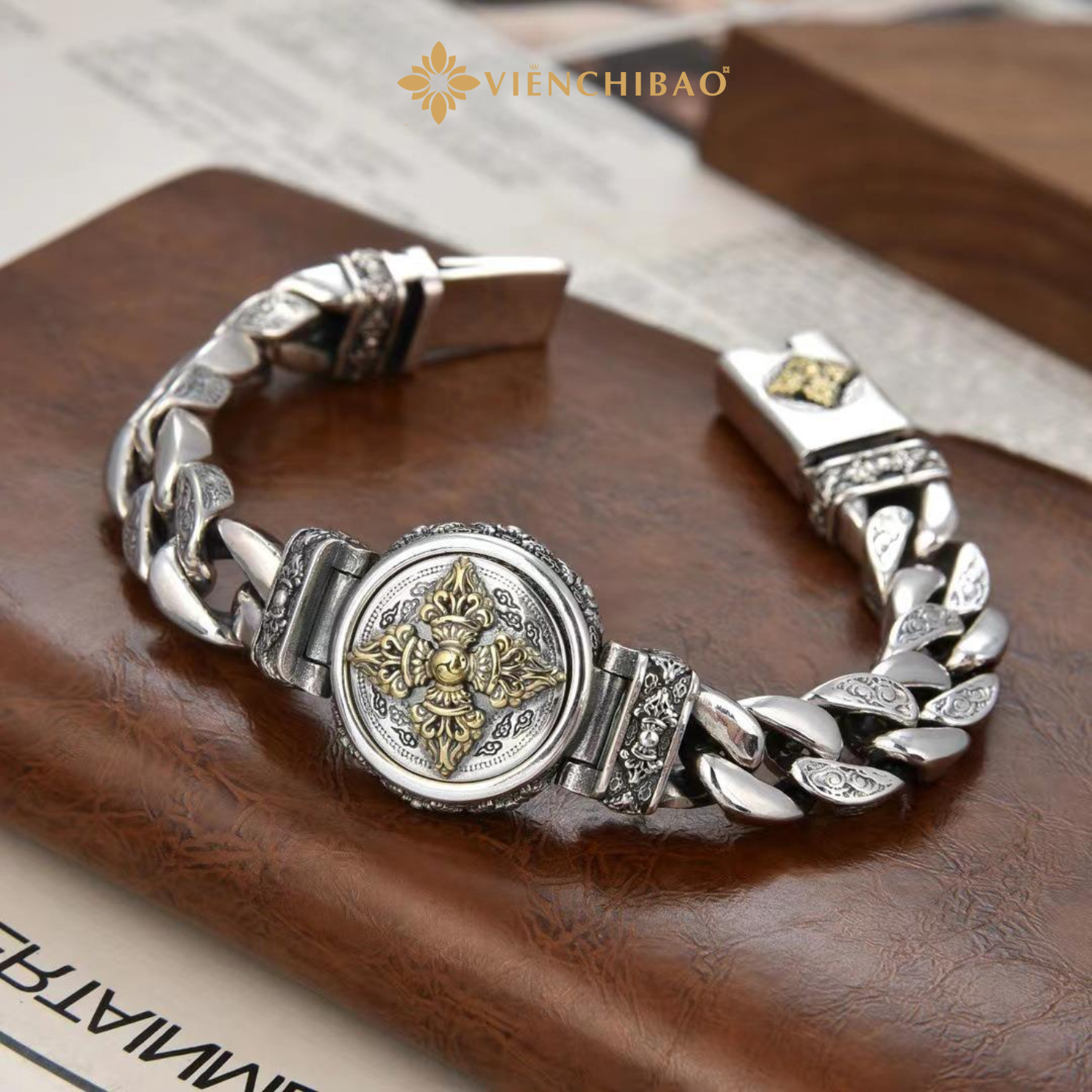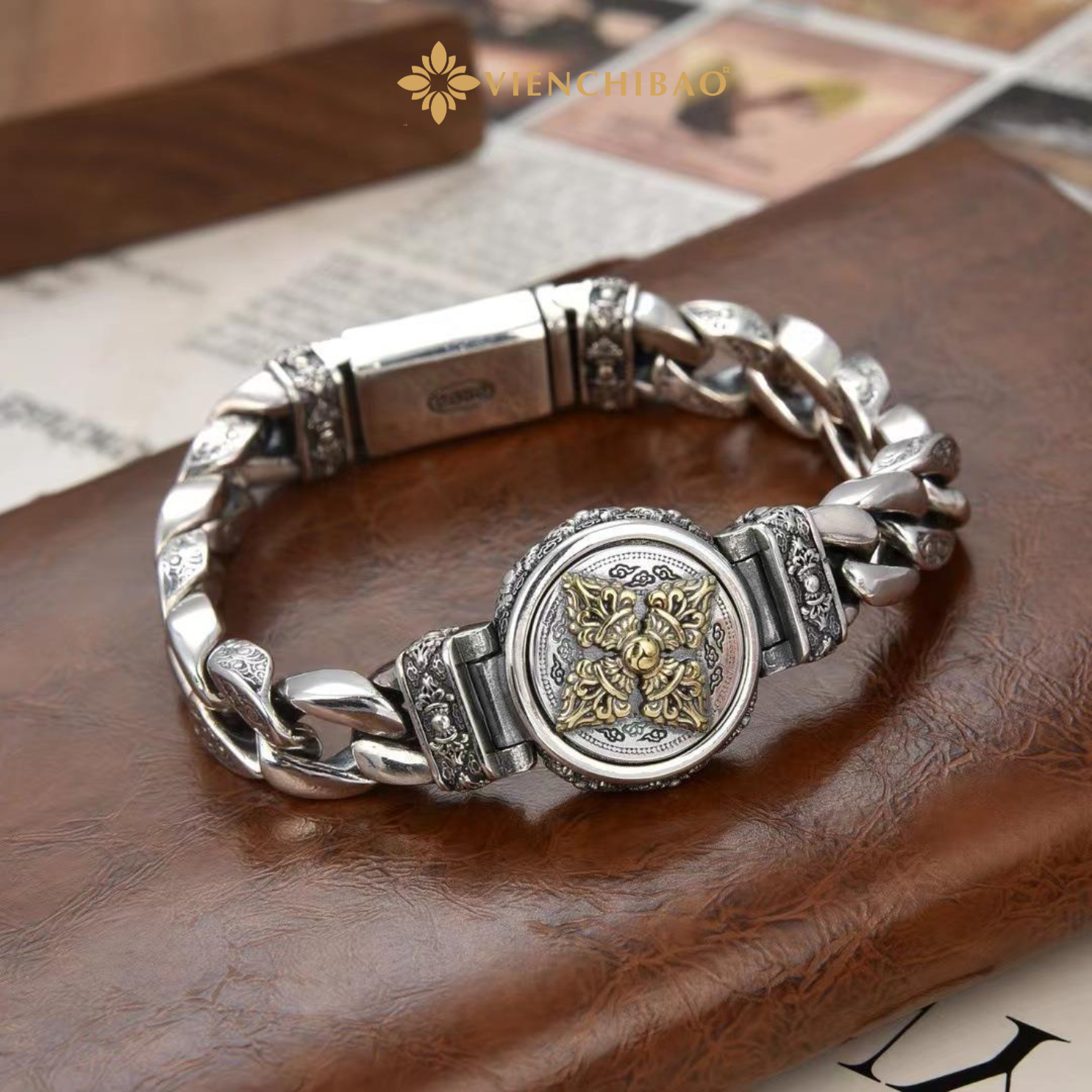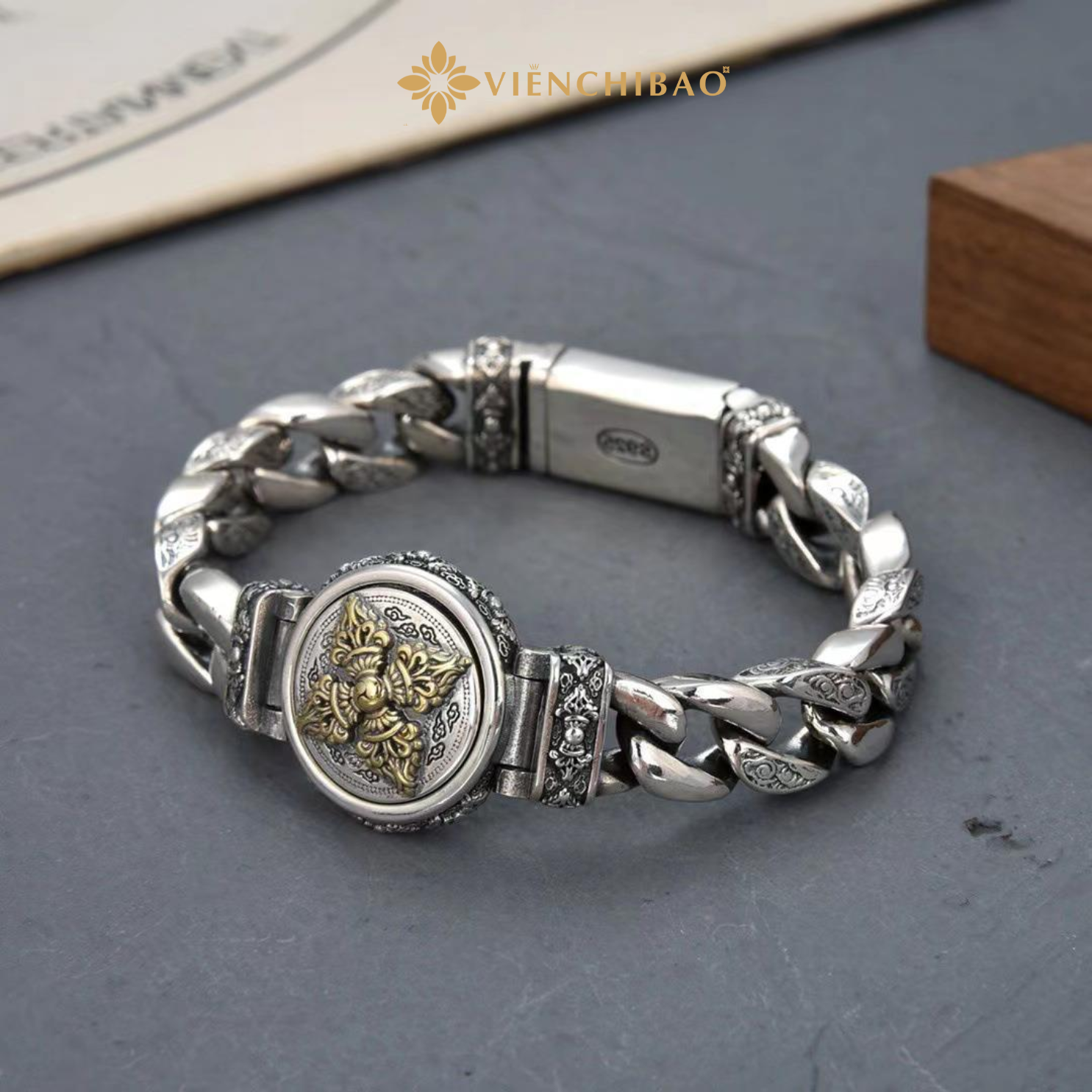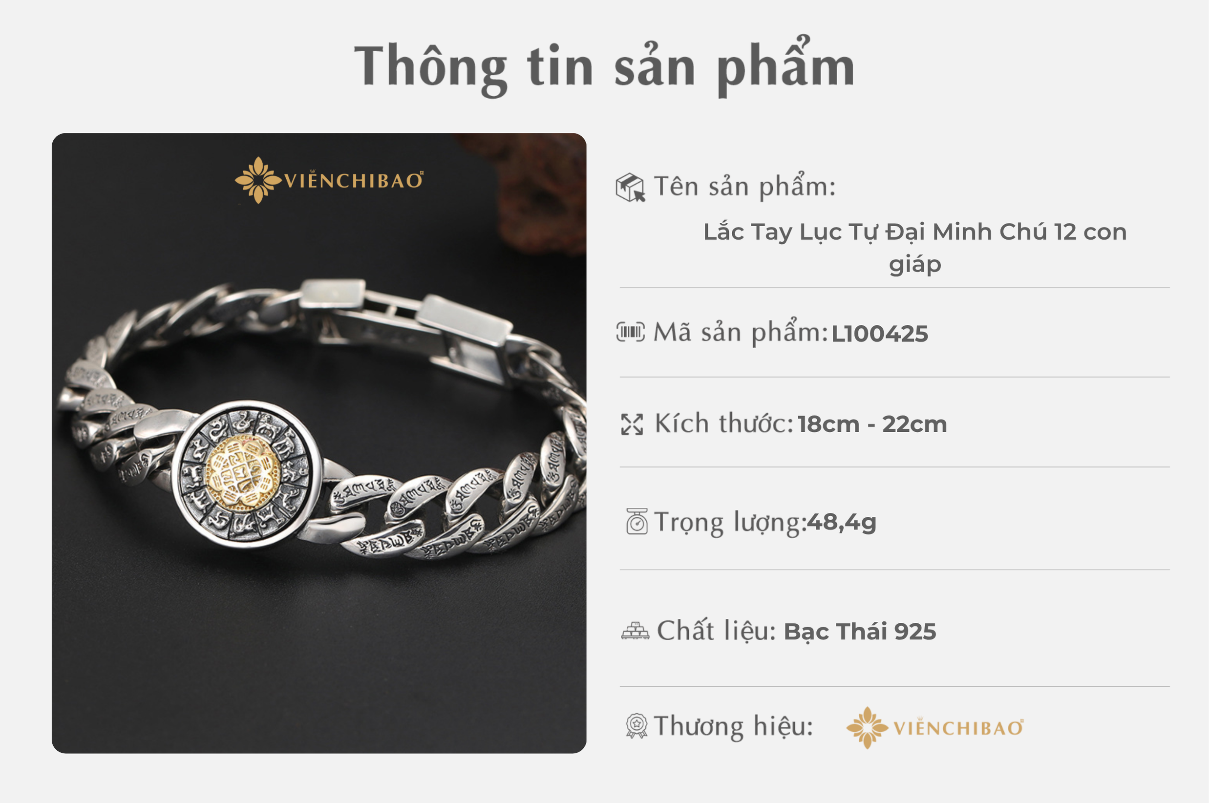 Lắc Tay Lục Tự Đại Minh Chú là mẫu trang sức phong thủy cao cấp dành cho nam giới – được chế tác thủ công từ bạc Thái S925 nguyên khối, mang trong mình câu chân ngôn “Om Mani Padme Hum” – biểu tượng của lòng từ bi và trí tuệ giác ngộ. Sản phẩm không chỉ là món trang sức đẹp mắt, mà còn là vật phẩm tâm linh đồng hành cùng người đeo trên hành trình sống có ý nghĩa, nhắc nhớ về sự an nhiên, minh mẫn và hướng thiện.