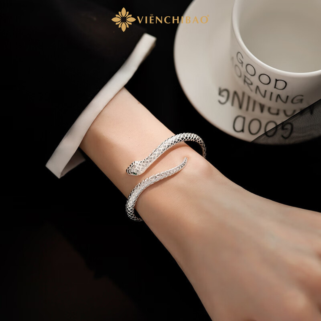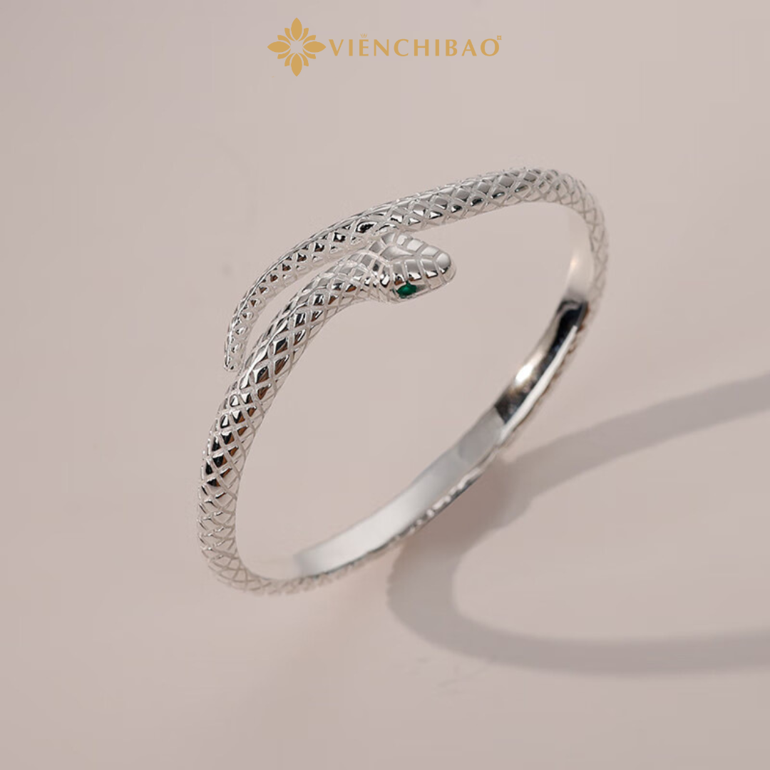Kiểu dáng: Lắc tay hình mãng xà quấn cổ tay, đầu rắn được tạc rõ nét, ánh mắt sắc sảo, mang đến cảm giác sống động và mạnh mẽ.