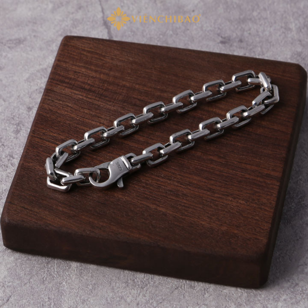 Lắc Tay Mắt Xích Vuông Bạc Thái là mẫu trang sức mang phong cách hiện đại, tối giản nhưng đầy cá tính. Thiết kế lấy cảm hứng từ những mắt xích vuông mạnh mẽ, biểu trưng cho sự kiên định, bền bỉ và gắn kết – tựa như mối liên kết giữa con người và hành trình sống của họ.