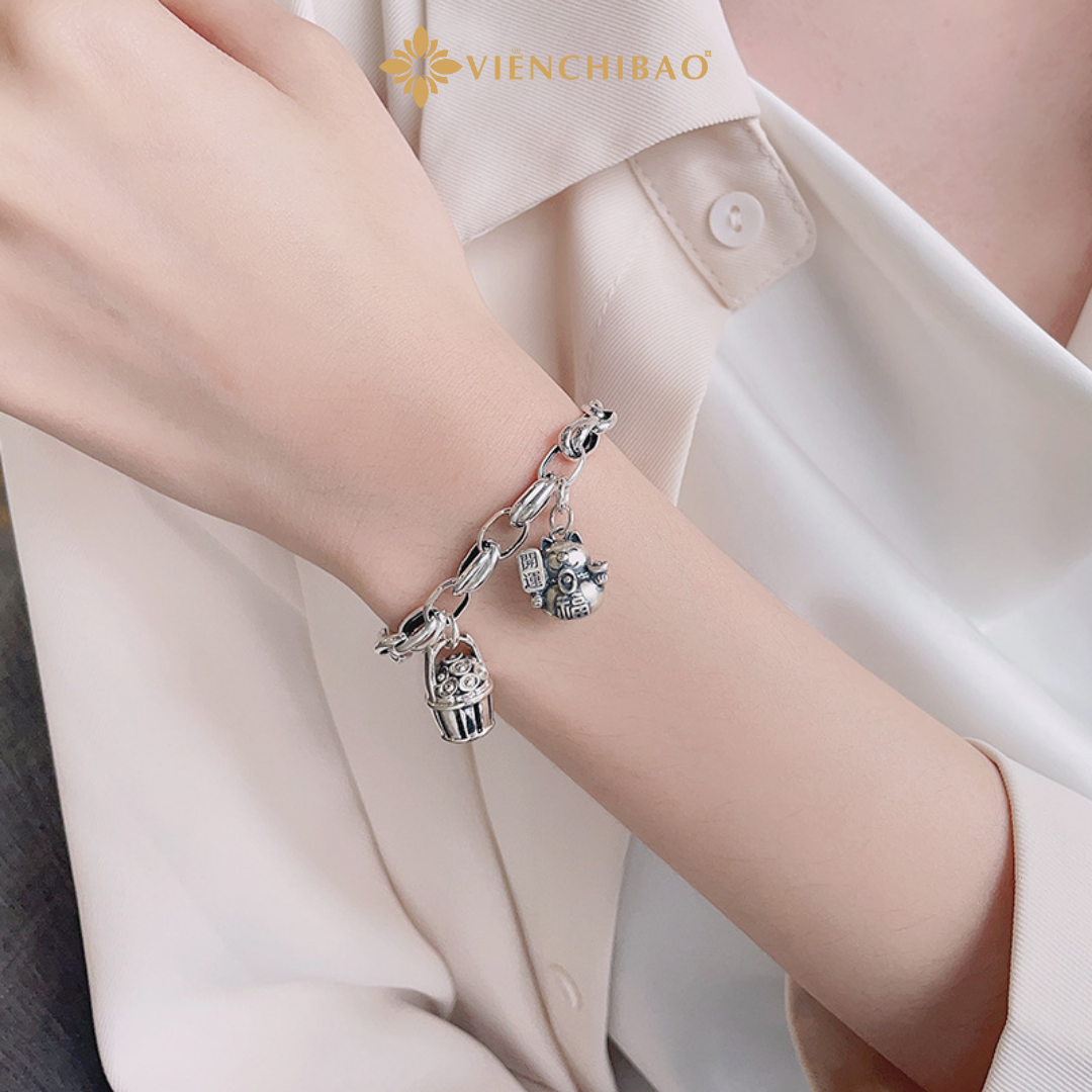 Ngoài ra, sự kết hợp giữa charm mèo, đồng xu và bi bạc còn thể hiện mong ước về cuộc sống đủ đầy, thuận lợi và an nhiên – rất phù hợp để làm quà tặng cho người thân, bạn bè hoặc đối tác kinh doanh.