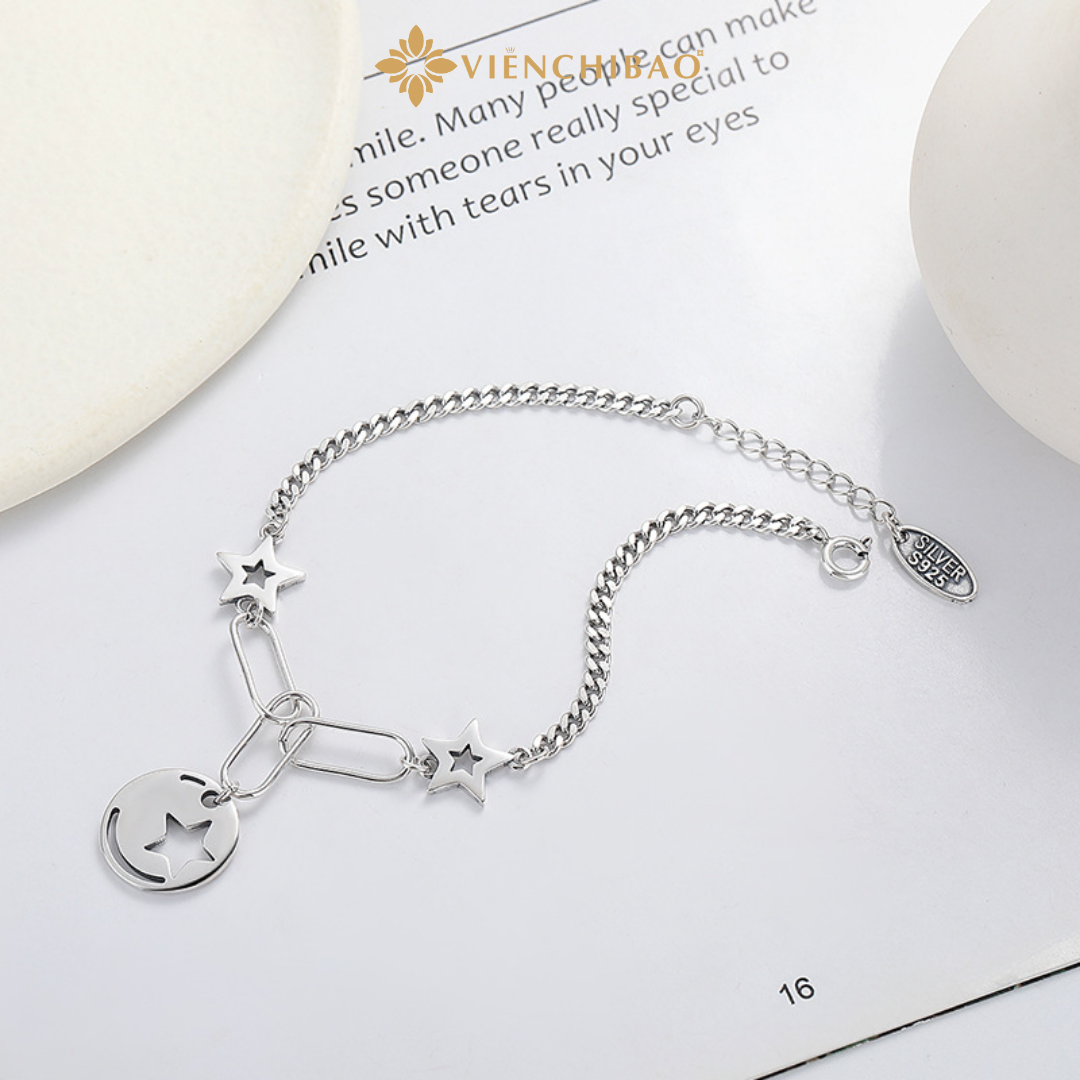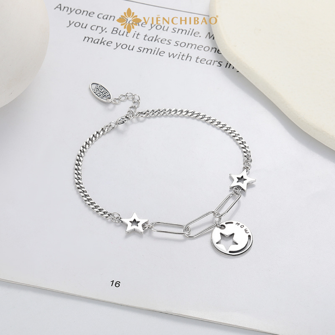 Bề mặt lắc tay được xử lý bằng kỹ thuật thủ công tỉ mỉ, kết hợp công nghệ oxy hóa đặc trưng, giúp làm nổi bật chi tiết charm ngôi sao rỗng và tạo nên gam màu sang trọng, hiện đại. Ngoài ra, bạc còn có đặc tính kháng khuẩn tự nhiên, an toàn cho da và phù hợp với mọi loại da, kể cả da nhạy cảm. Đây chính là yếu tố quan trọng khiến lắc tay ngôi sao rỗng vừa đẹp mắt vừa mang lại sự an tâm tuyệt đối khi sử dụng hằng ngày.
