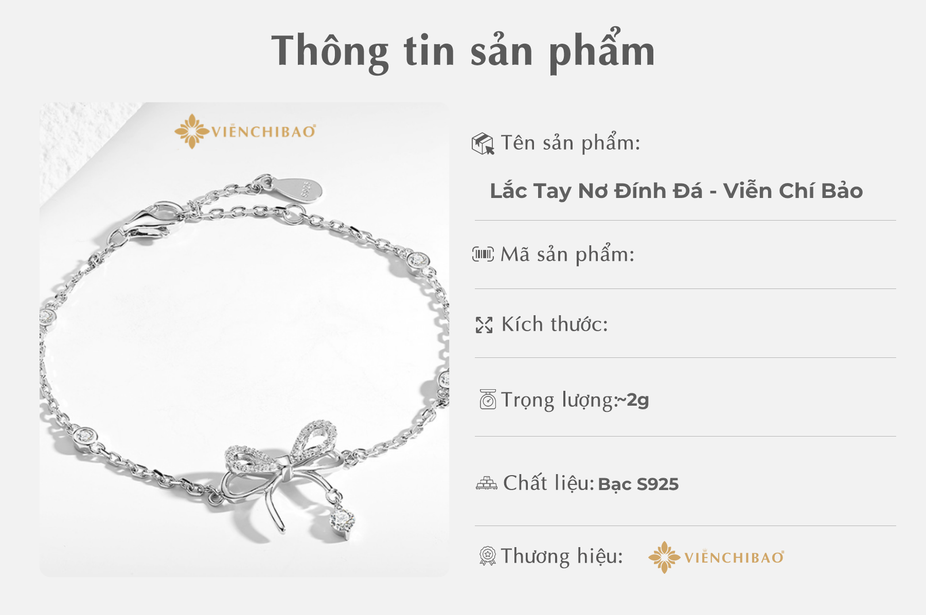 II. Thông Tin Sản Phẩm Lắc Tay Nơ Đính Đá – Bạc S925