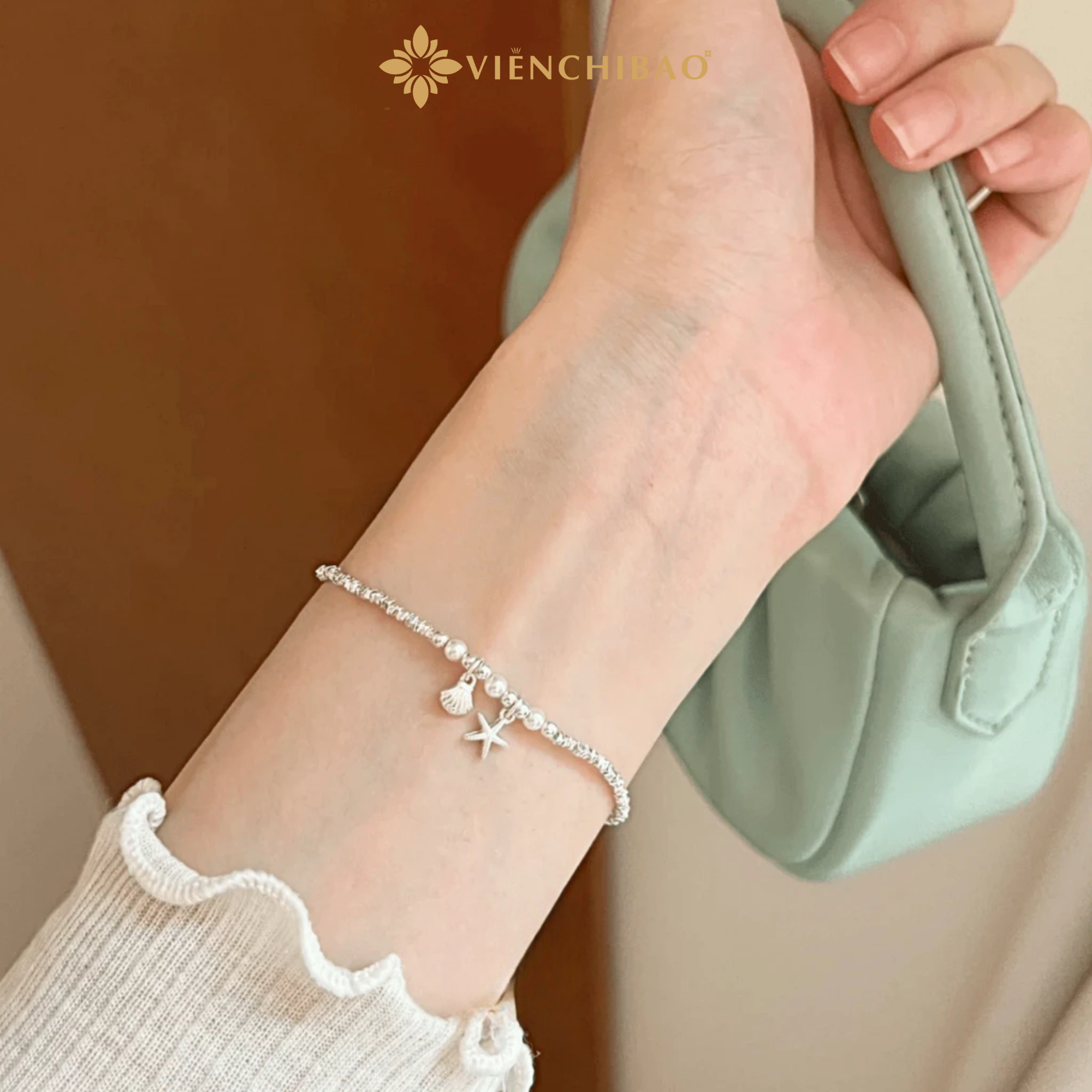 LẮC TAY BẠC NỮ SAO BIỂN ĐÍNH NGỌC TRAI - VIỄN CHÍ BẢO - L400013
