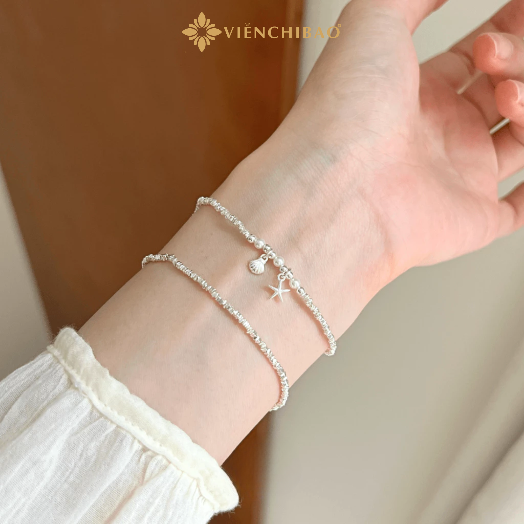 Chiếc lắc tay bạc nữ sao biển đính ngọc trai S925 được chế tác tinh xảo từ chất liệu bạc S925 cao cấp, mang lại vẻ sáng bóng tự nhiên và an toàn tuyệt đối với làn da. Điểm nhấn nổi bật của thiết kế chính là sự kết hợp giữa những hạt ngọc trai trắng ngọc ngà xen kẽ chuỗi hạt bạc nhỏ, tạo nên sự hài hòa mềm mại. Trên nền đó, hai charm nhỏ xinh – một chiếc sao biển và một vỏ sò – được đính khéo léo, vừa mang hơi thở của biển cả, vừa khiến cho tổng thể chiếc lắc thêm phần duyên dáng và độc đáo. Thiết kế mảnh mai, nhẹ nhàng nhưng đầy tinh tế, giúp tôn lên vẻ đẹp thanh thoát nơi cổ tay, khiến người đeo trở nên dịu dàng và nữ tính hơn trong mọi hoàn cảnh.