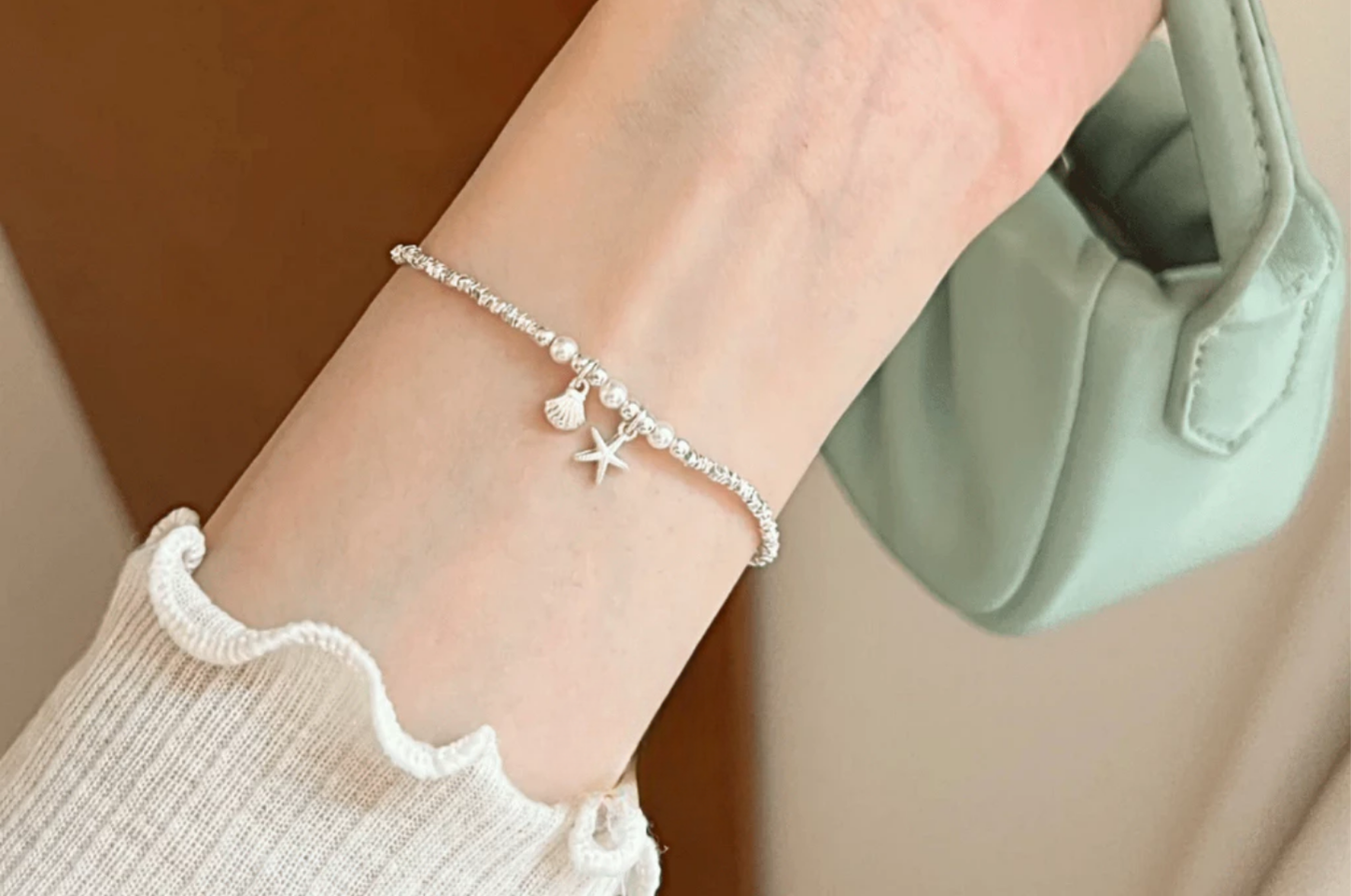 2. Hình ảnh & Chất liệu Lắc tay Bạc nữ sao biển đính ngọc trai