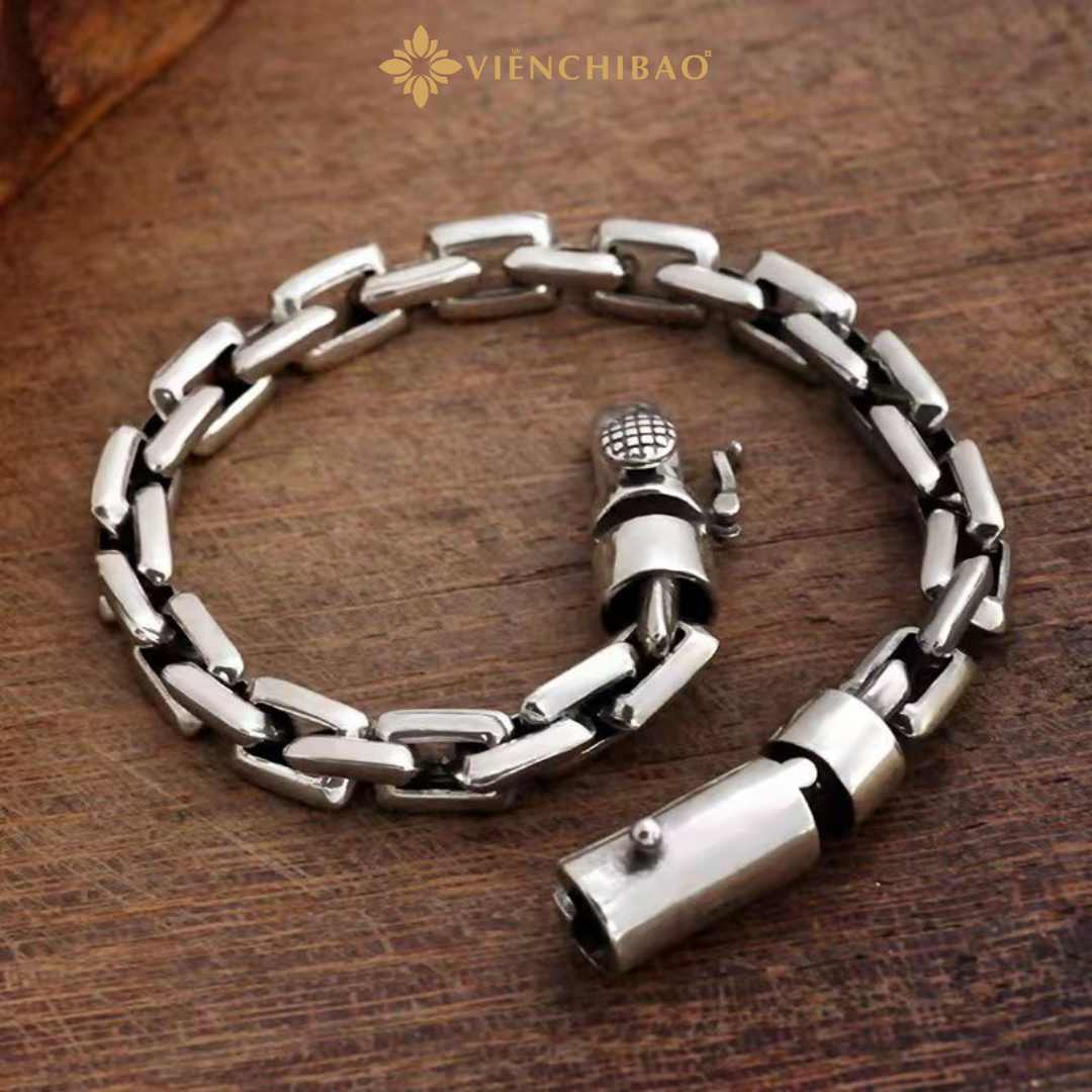 Lắc Tay Xích Dày Khóa Trụ Bạc Thái là biểu tượng của sự mạnh mẽ, kiên định và đẳng cấp nam tính. Với thiết kế dây xích dày ấn tượng cùng khóa trụ độc đáo, sản phẩm không chỉ là một món trang sức mà còn là tuyên ngôn phong cách cho người đeo.