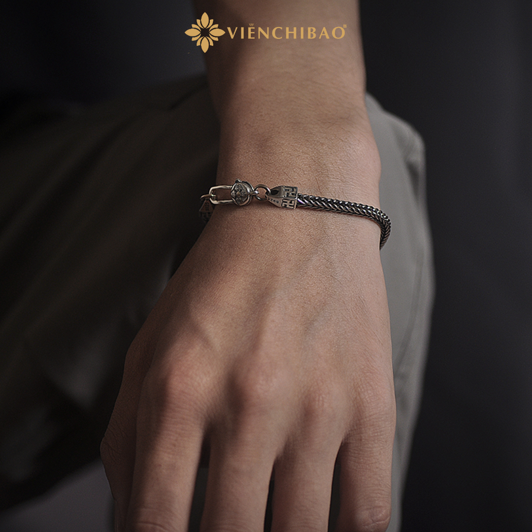 Sản phẩm được chế tác hoàn toàn thủ công từ bạc Thái cao cấp, kết hợp giữa nét cổ điển và hiện đại, tạo nên vẻ đẹp nam tính nhưng vẫn thanh lịch. Với cấu trúc mắt xích linh hoạt, lắc tay ôm cổ tay tự nhiên, đem lại cảm giác thoải mái khi đeo suốt cả ngày.