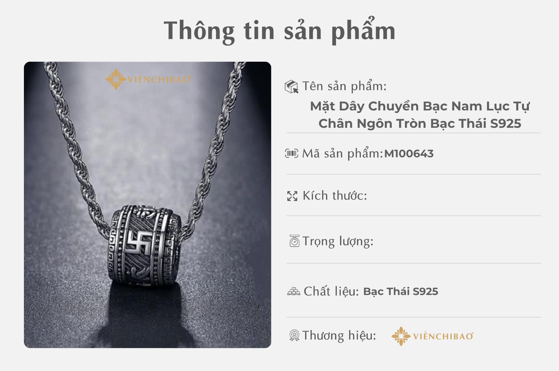 II. Thông tin sản phẩm mặt dây chuyền bạc nam Lục Tự Chân Ngôn