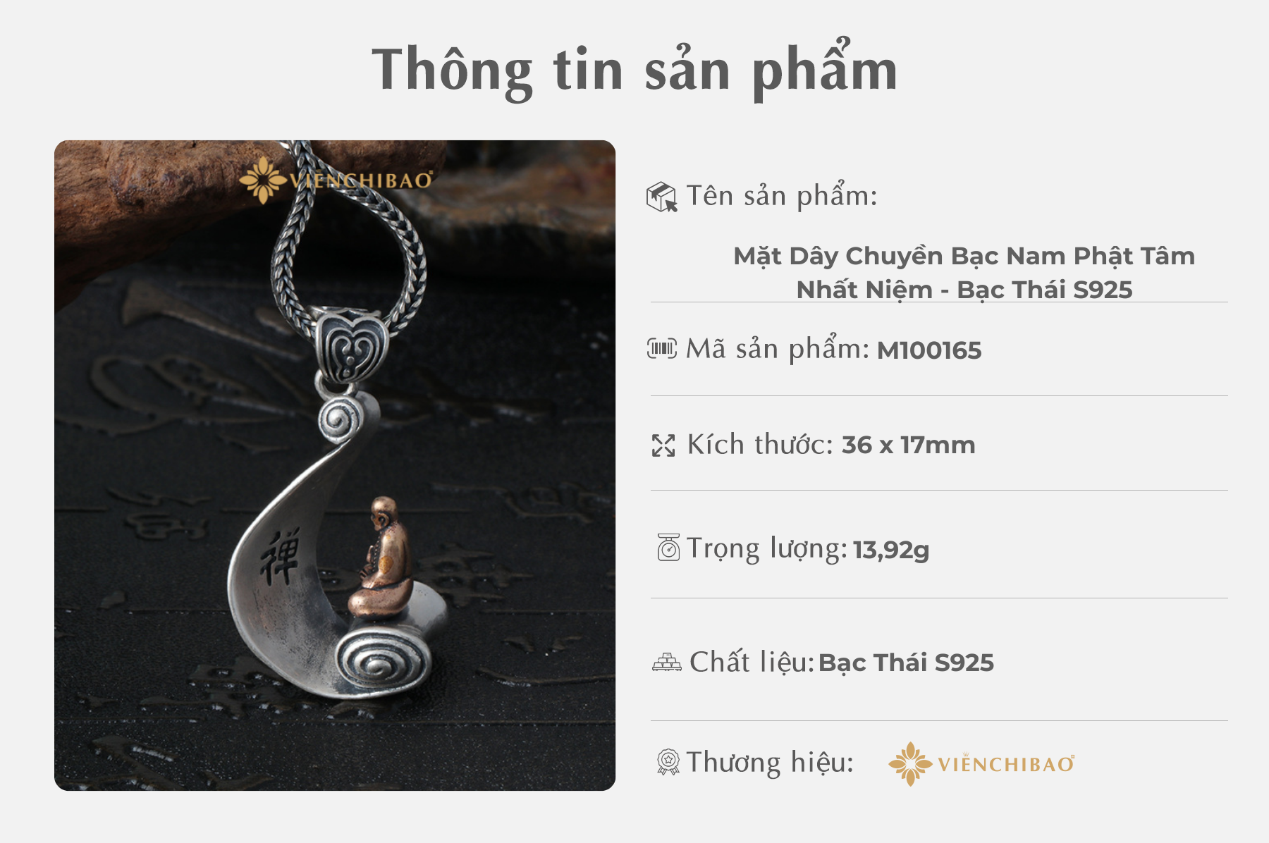 II. Thông tin sản phẩm Mặt Dây Chuyền Bạc Nam Phật Tâm Nhất Niệm