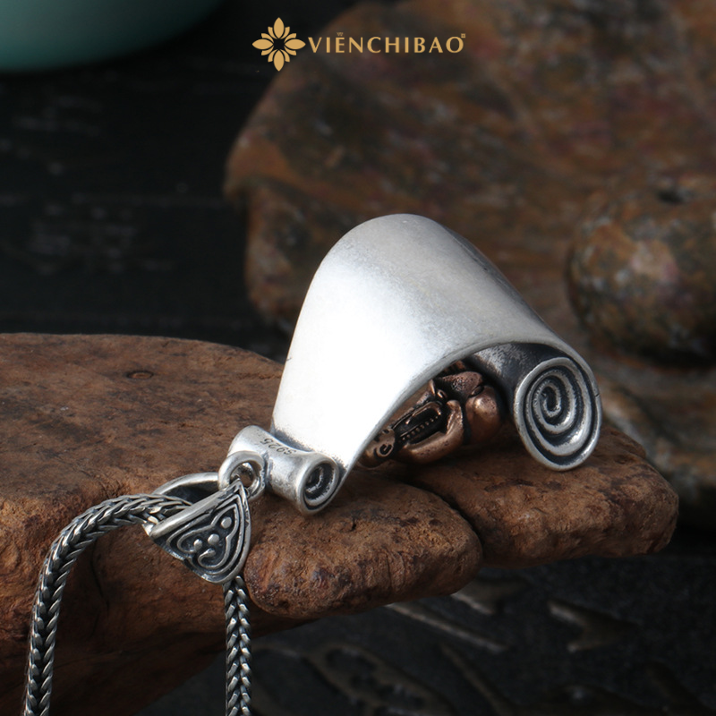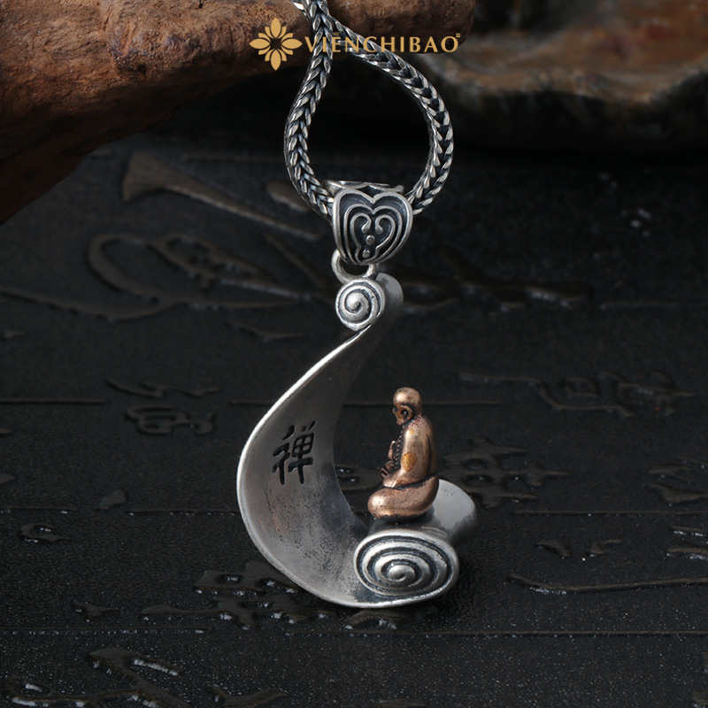 • Chất liệu: Bạc Thái S925 cao cấp, kết hợp điểm nhấn màu đồng giả cổ trên tượng thiền sư.