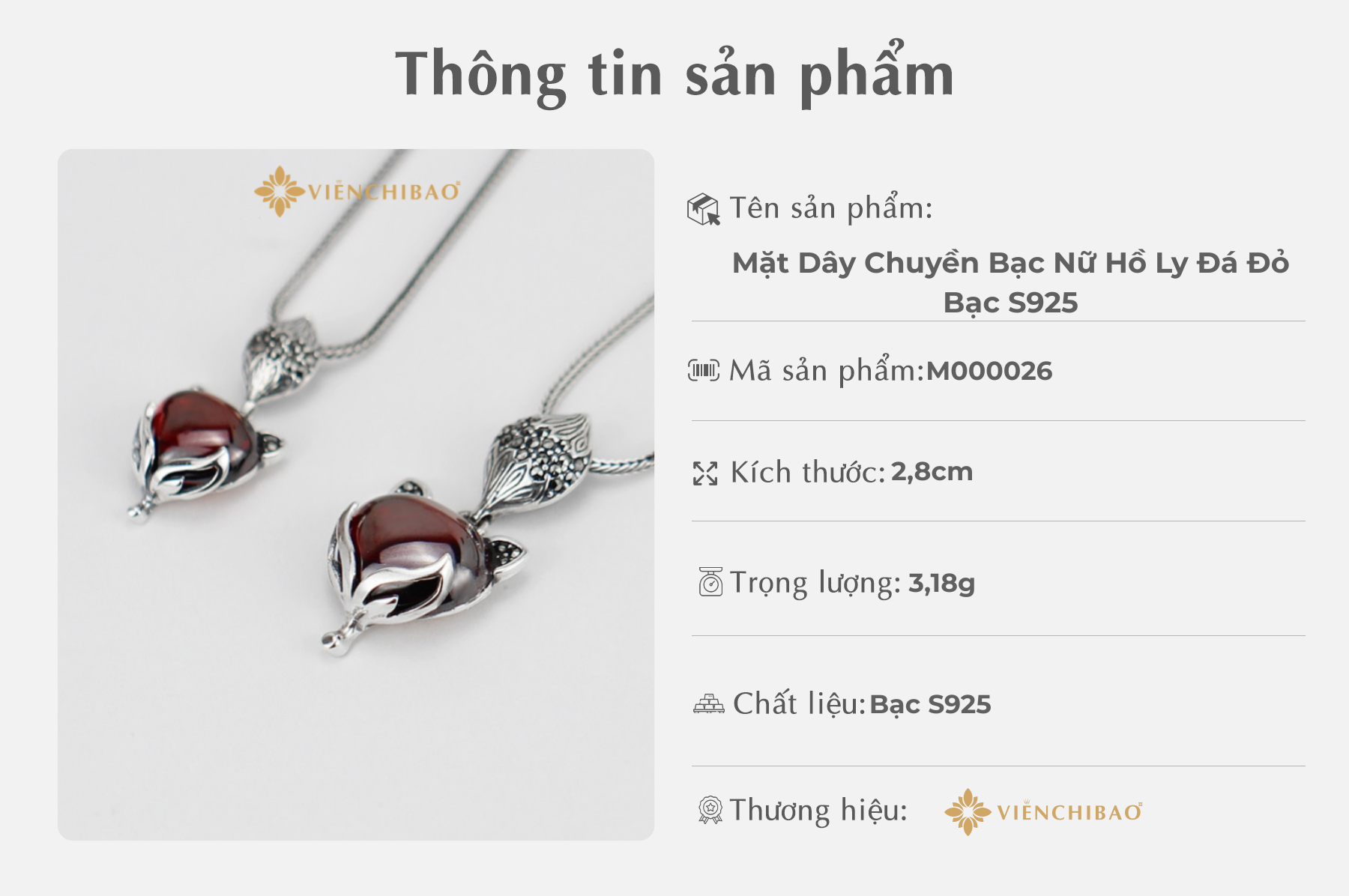 Sản phẩm được chế tác từ bạc S925 – dòng bạc cao cấp chuyên dùng trong chế tác trang sức cao cấp tại Viễn Chí Bảo. Mặt dây có độ hoàn thiện cao, không gây kích ứng da, an toàn cho người sử dụng lâu dài. Viên đá đỏ ở phần thân hồ ly được chọn lọc kỹ lưỡng, có độ bóng sáng và sắc độ ổn định theo thời gian.
