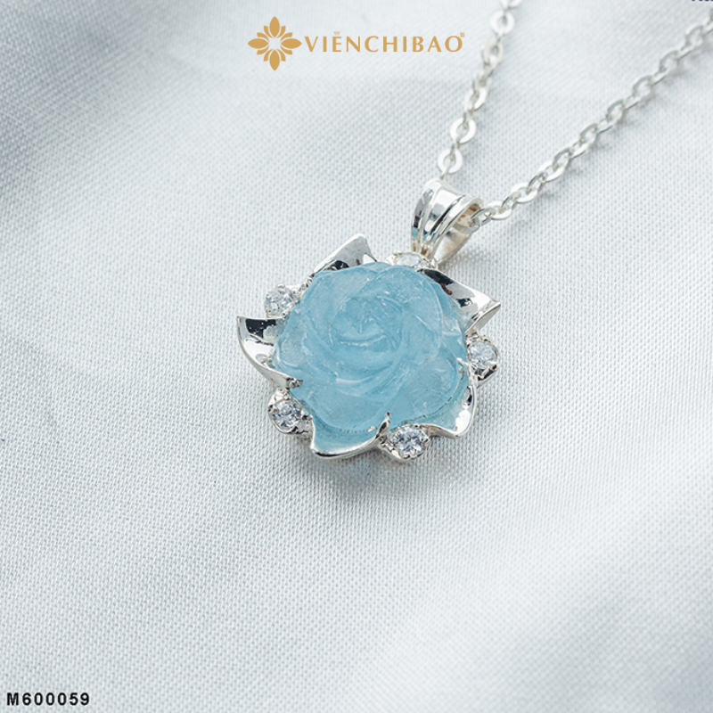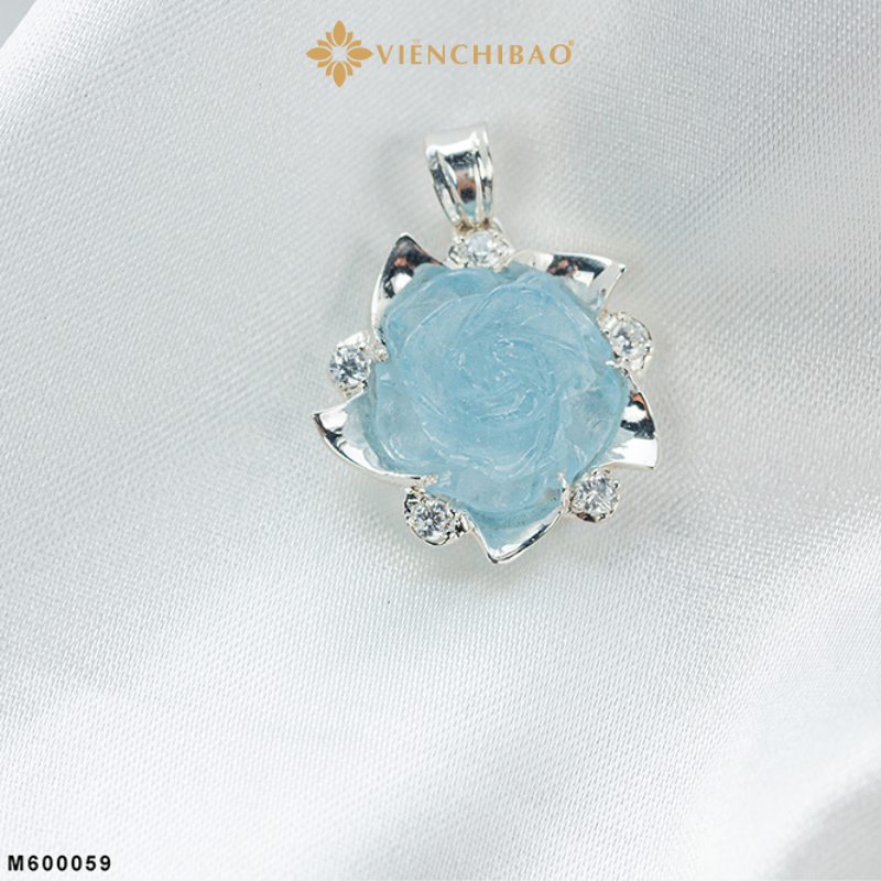 Tên sản phẩm: Mặt Dây Chuyền Bạc Nữ Hoa Mẫu Đơn Aquamarine
