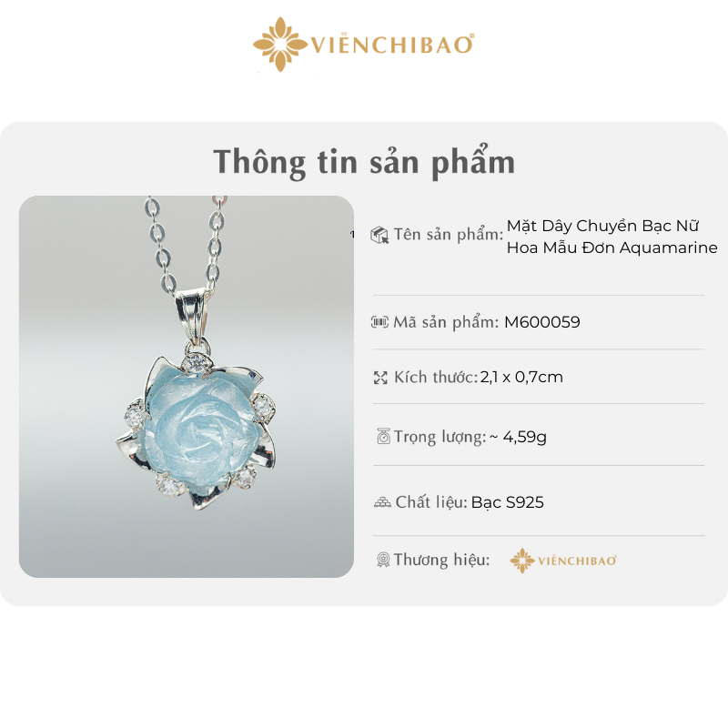 THÔNG TIN SẢN PHẨM MẶT DÂY CHUYỀN HOA MẪU ĐƠN AQUAMARINE