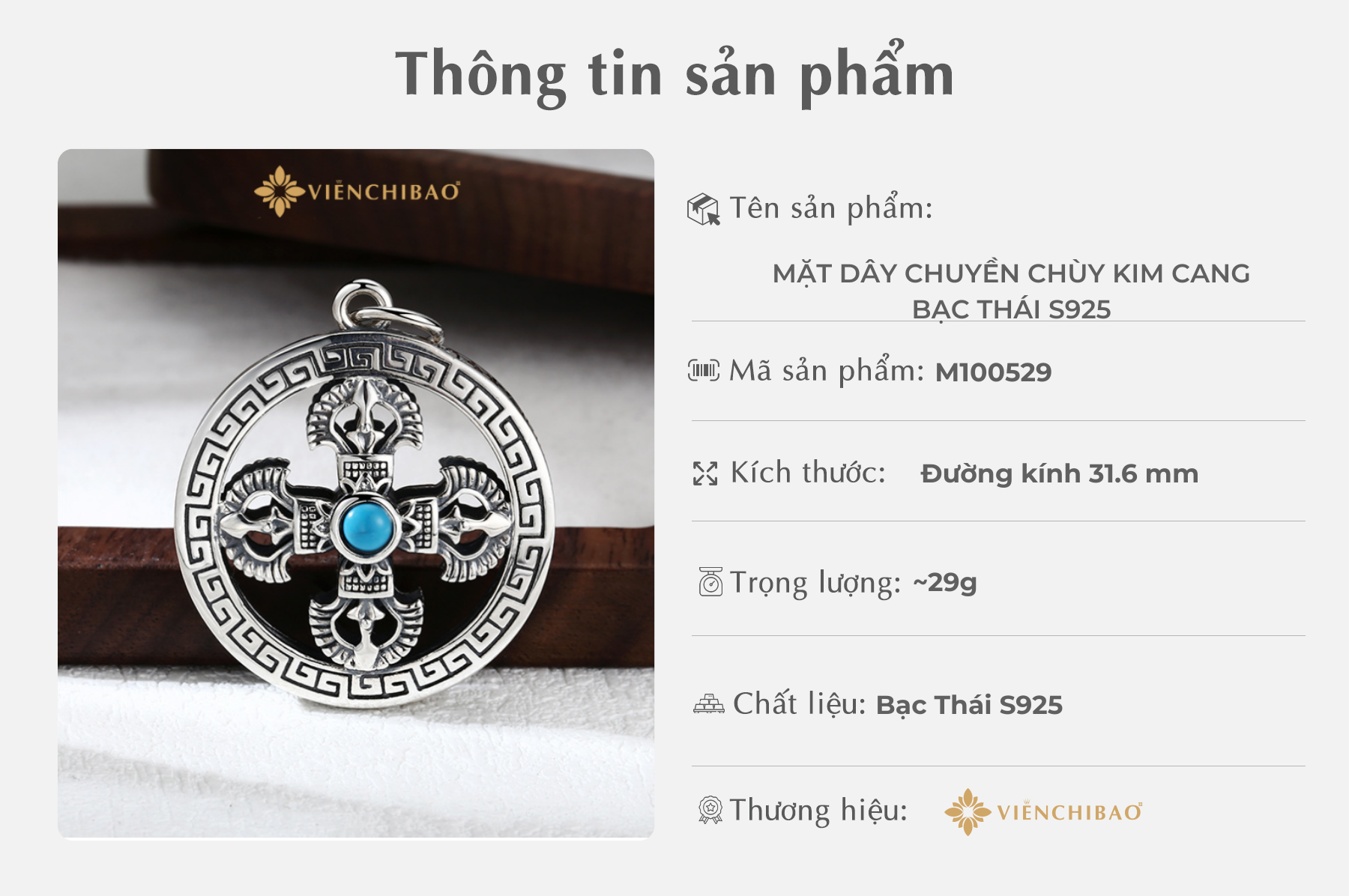 Viễn Chí Bảo tin rằng mỗi món trang sức đều mang một câu chuyện và một sứ mệnh riêng. Với mặt dây chuyền chùy kim cang, chúng tôi mong muốn mang đến cho bạn không chỉ một món phụ kiện thời trang mà còn là vật phẩm phong thủy – nơi tinh hoa chế tác bạc Thái gặp gỡ tinh thần Phật giáo. Cảm ơn bạn đã chọn Viễn Chí Bảo là người bạn đồng hành trên hành trình tìm kiếm sự bình an, may mắn và cá tính riêng biệt.