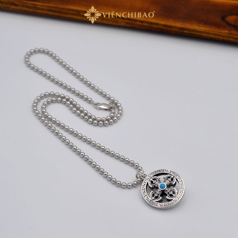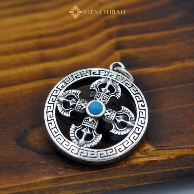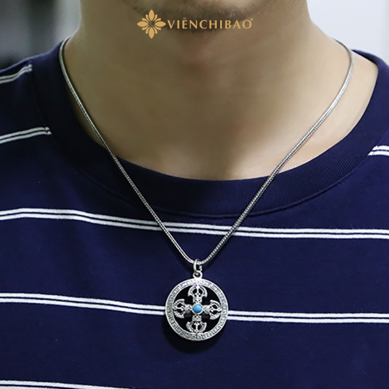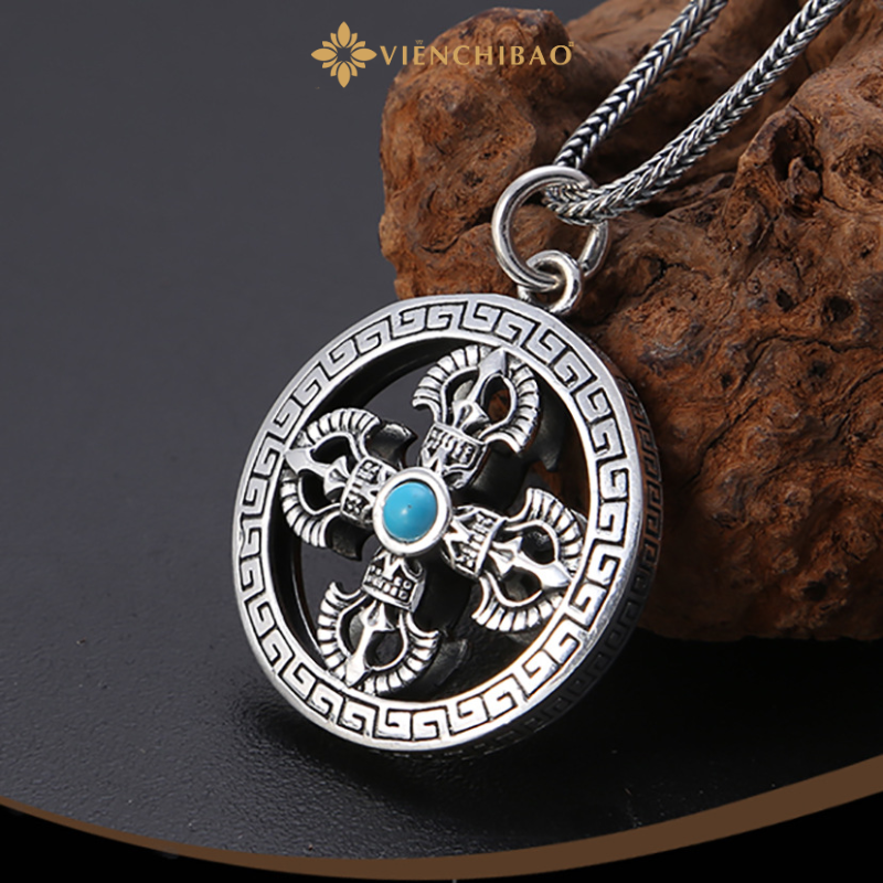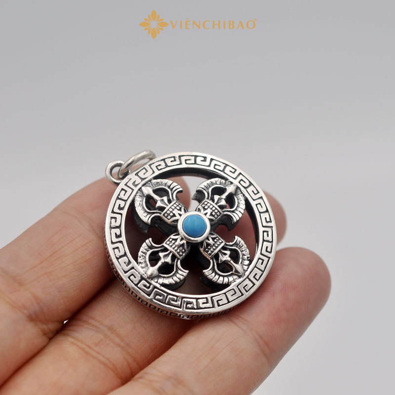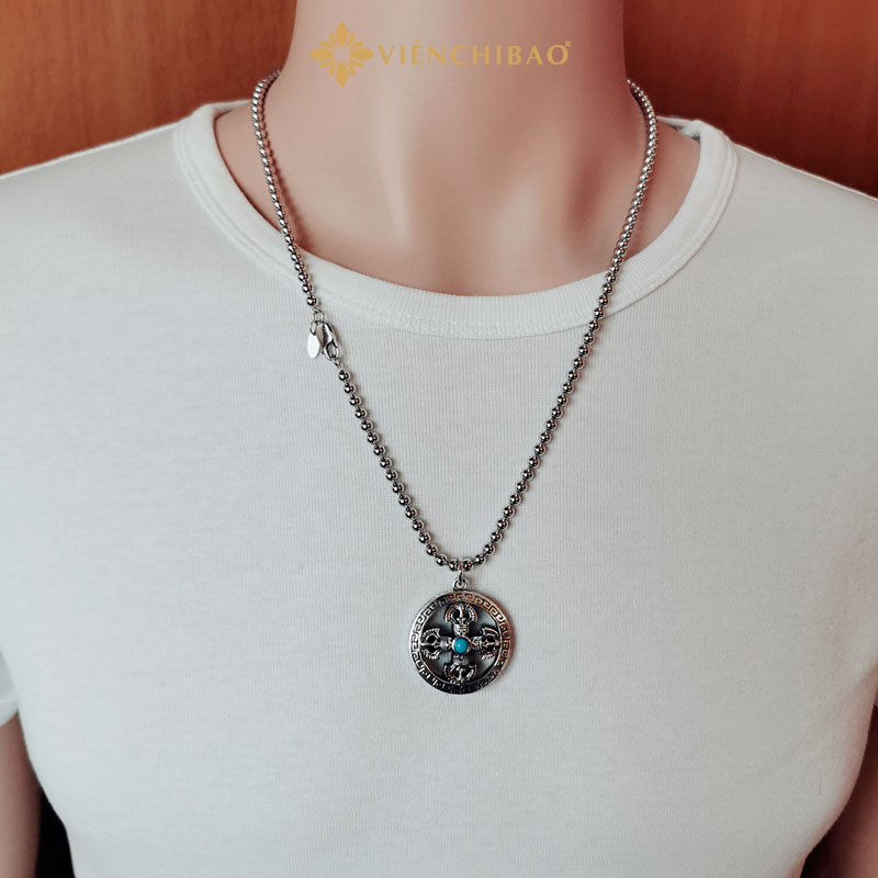 Sự kết hợp giữa hoa văn vân mây, họa tiết cổ phương Đông và viên đá turquoise xanh lam nổi bật ở trung tâm giúp sản phẩm tạo ấn tượng ngay từ cái nhìn đầu tiên. Không chỉ là trang sức, mặt dây chuyền còn là bùa hộ mệnh, là điểm tựa tinh thần trong cuộc sống đầy biến động.