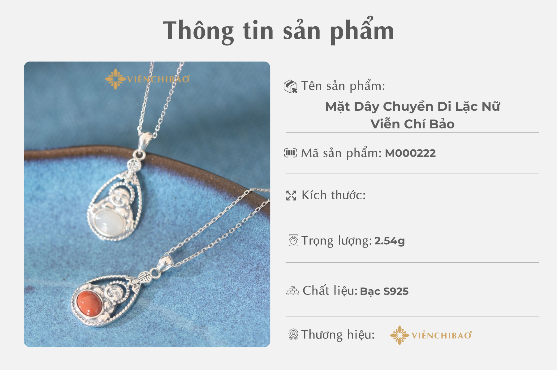 II. Thông Tin Sản Phẩm Mặt Dây Chuyền Di Lặc Nữ – Viễn Chí Bảo