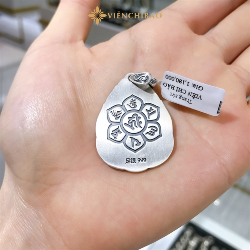Phía sau của mặt được khắc hình ảnh hoa sen và câu thần chú lục tự đại minh chân ngôn: Theo dân gian phương Đông tin rằng khi đeo những trang sức khắc chú Oṃ Maṇi Padme Huṃ trên người để bảo vệ tâm khỏi những niệm tưởng mê lầm, chặt đứt vô minh và khai mở trí tuệ. Nó làm tăng trưởng vô lượng sự ban phước và khiến ta có thể đạt được an bình. Thần chú này thể cứu giúp và làm nguôi dịu hàng trăm và hàng ngàn khổ đau và khốn khó của chúng sinh, sẽ xua tan bệnh tật ốm đau và các thế lực ma quỷ, sẽ trở nên hạnh phúc an lạc và đầy đủ.