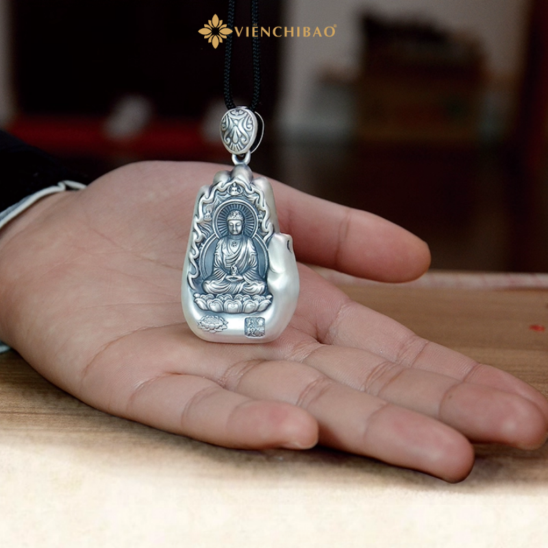Mặt dây chuyền nam Phật bản mệnh bàn tay vô lượng thọ quang – A Di Ðà