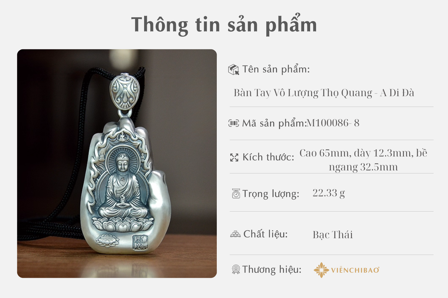 I, THÔNG TIN SẢN PHẨM MẶT DÂY CHUYỀN PHẬT BẢN MỆNH BÀN TAY VÔ LƯỢNG THỌ QUANG- A DI ĐÀ