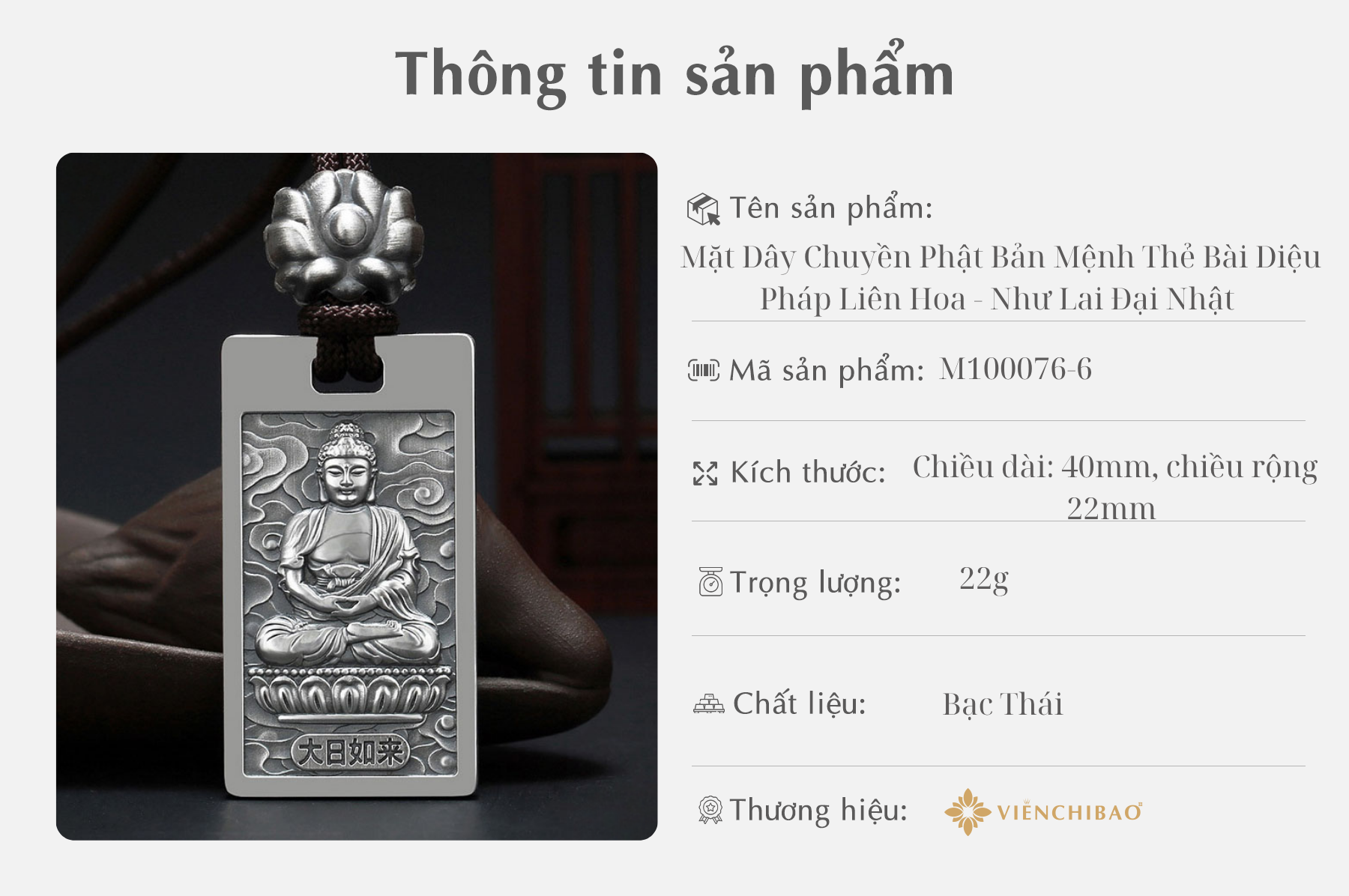 I, THÔNG TIN SẢN PHẨM MẶT DÂY CHUYỀN PHẬT BẢN MỆNH THẺ BÀI DIỆU PHÁP LIÊN HOA – NHƯ LAI ĐẠI NHẬT
