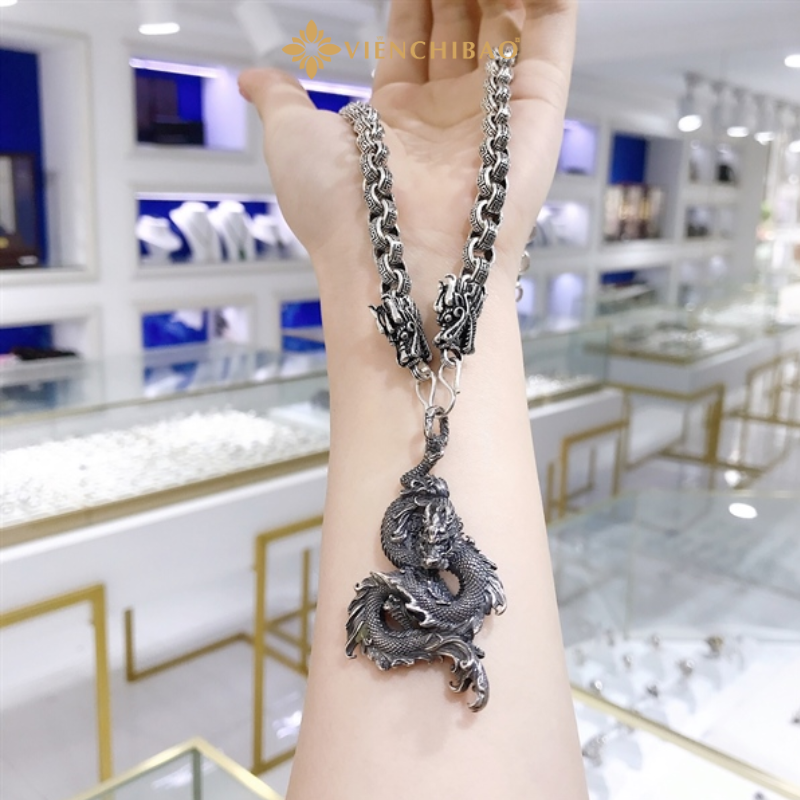Sản phẩm được chế tác từ bạc Thái S925, nổi bật với gam màu ánh đen cổ điển, độ bền cao và khả năng chống oxy hóa tốt. Bề mặt dây chuyền có độ nhám tinh tế giúp tạo hiệu ứng ánh sáng, tăng chiều sâu cho hình khối Rồng, tạo nên phong cách vừa bí ẩn vừa quyền lực.
